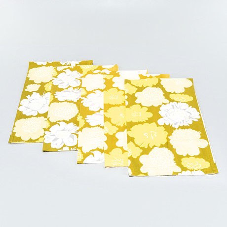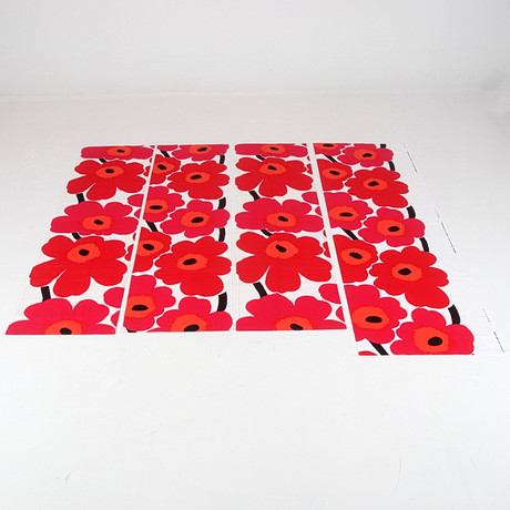 4 textiles "Unikko", mounted on wooden frames approx. 66 x 62 cm, 80 x 110 cm, 161 x 100 cm, 160 x 120 cm.