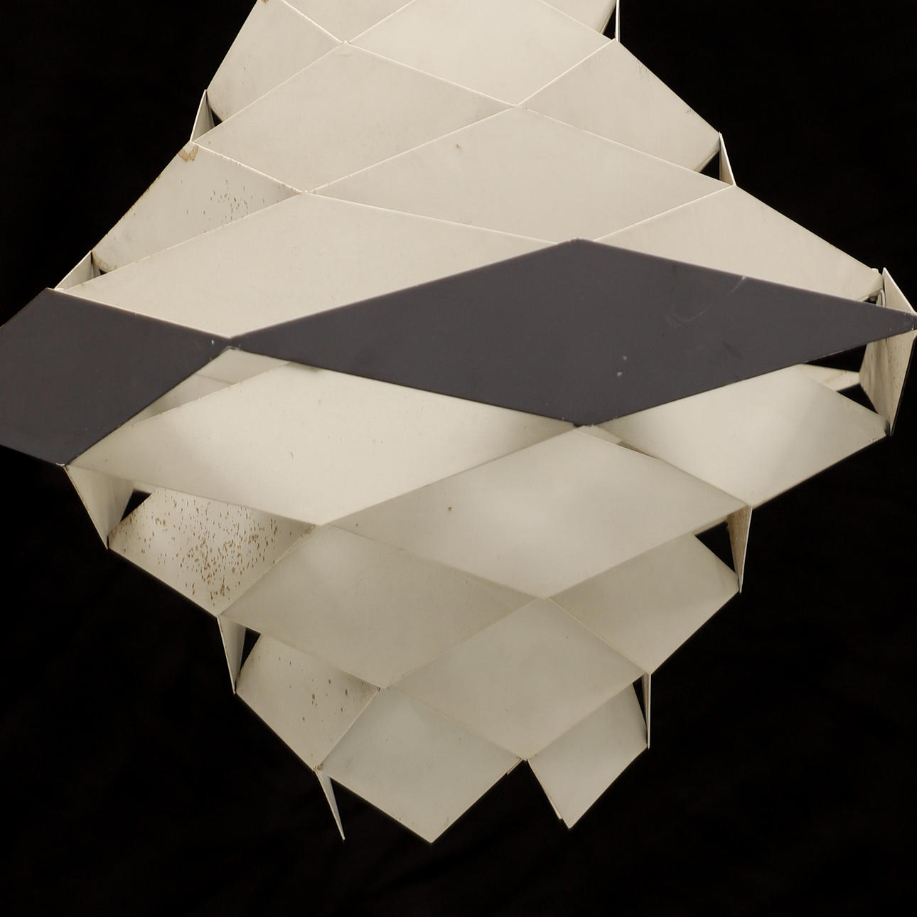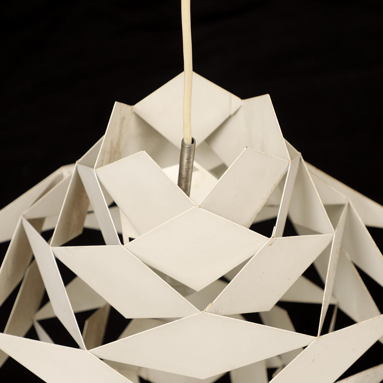 Pleated sheet metal lacquered in white and grey. Height 35 cm. Ø 40 cm.