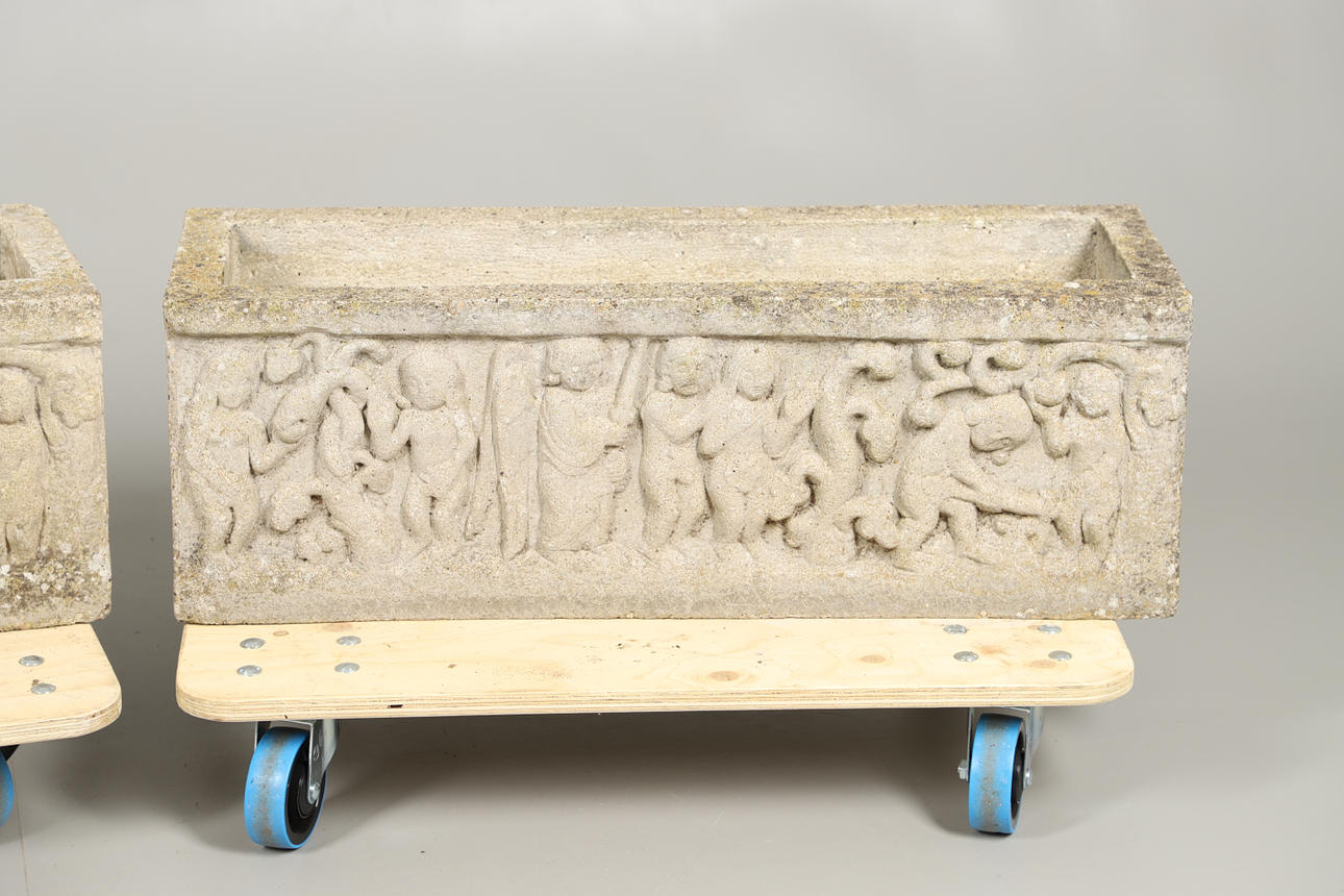 of rectangular form with Medieval style figural decoration, height 30cm, length 86cm, depth 29cm.