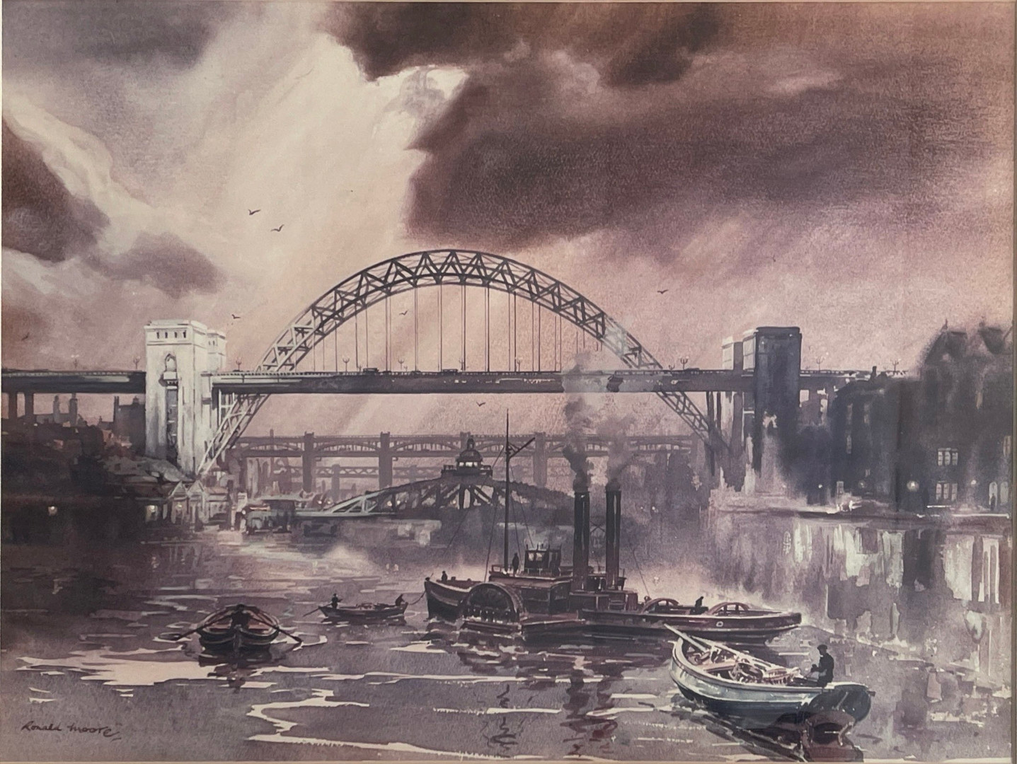3005836. RONALD MOORE. TYNE BRIDGES WATERCOLOUR.