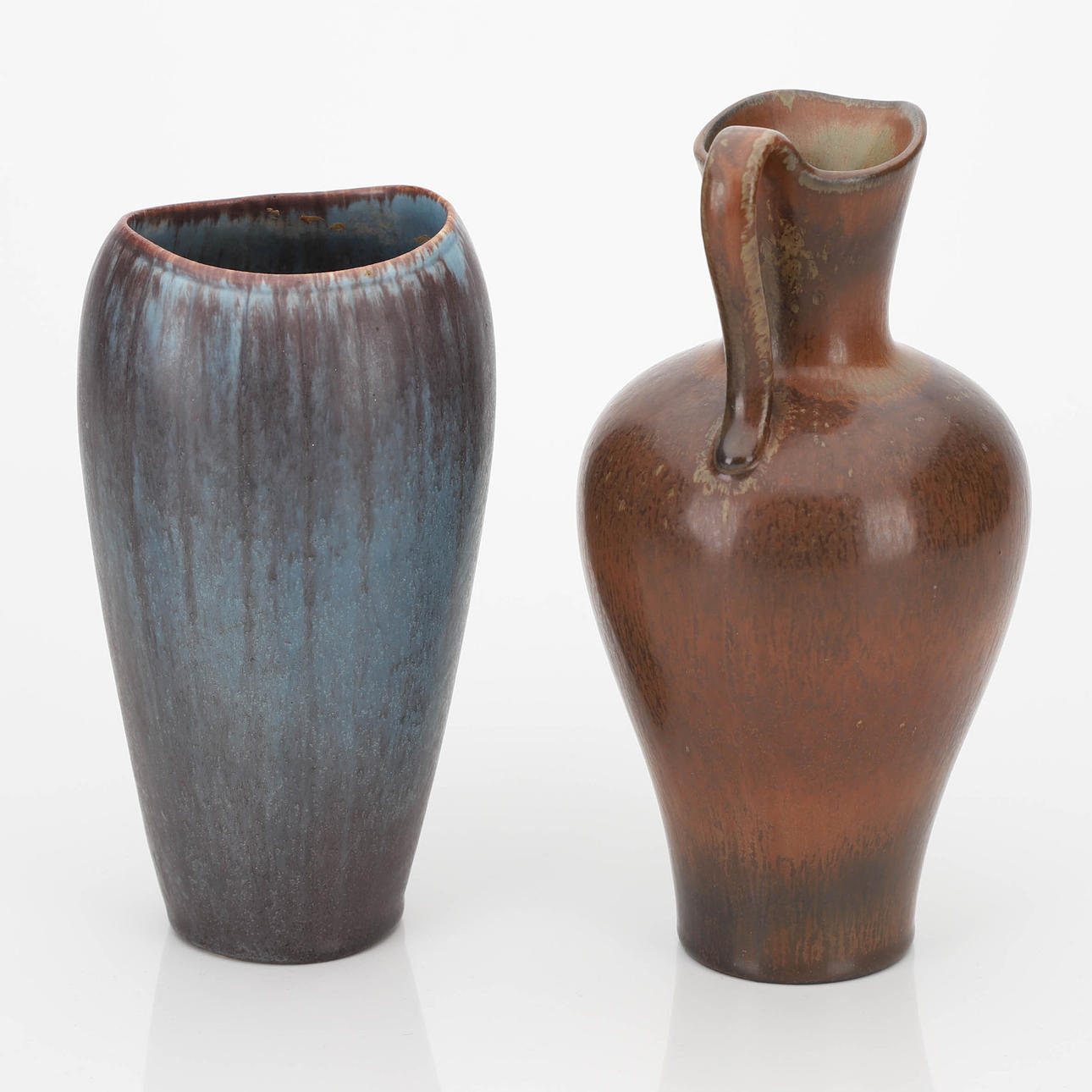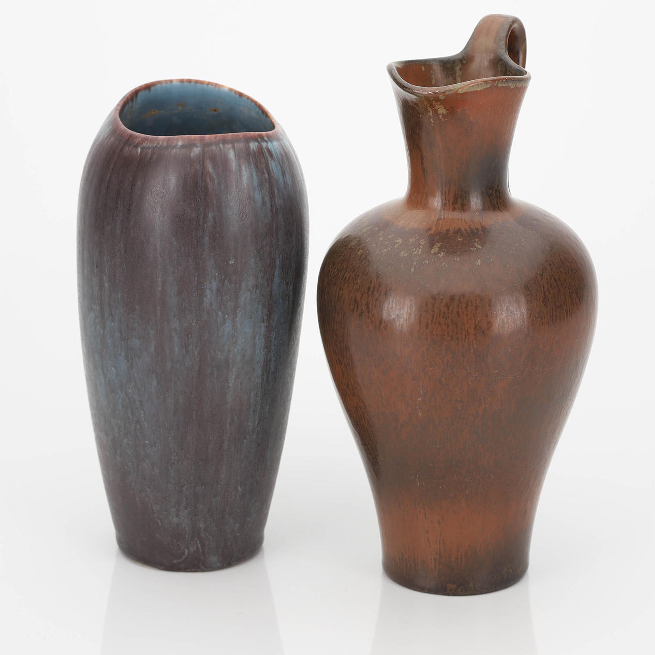 Signed GN R Sweden. Jug with brown glaze, vase with blue-brown glaze. Height 19.5-23 cm.