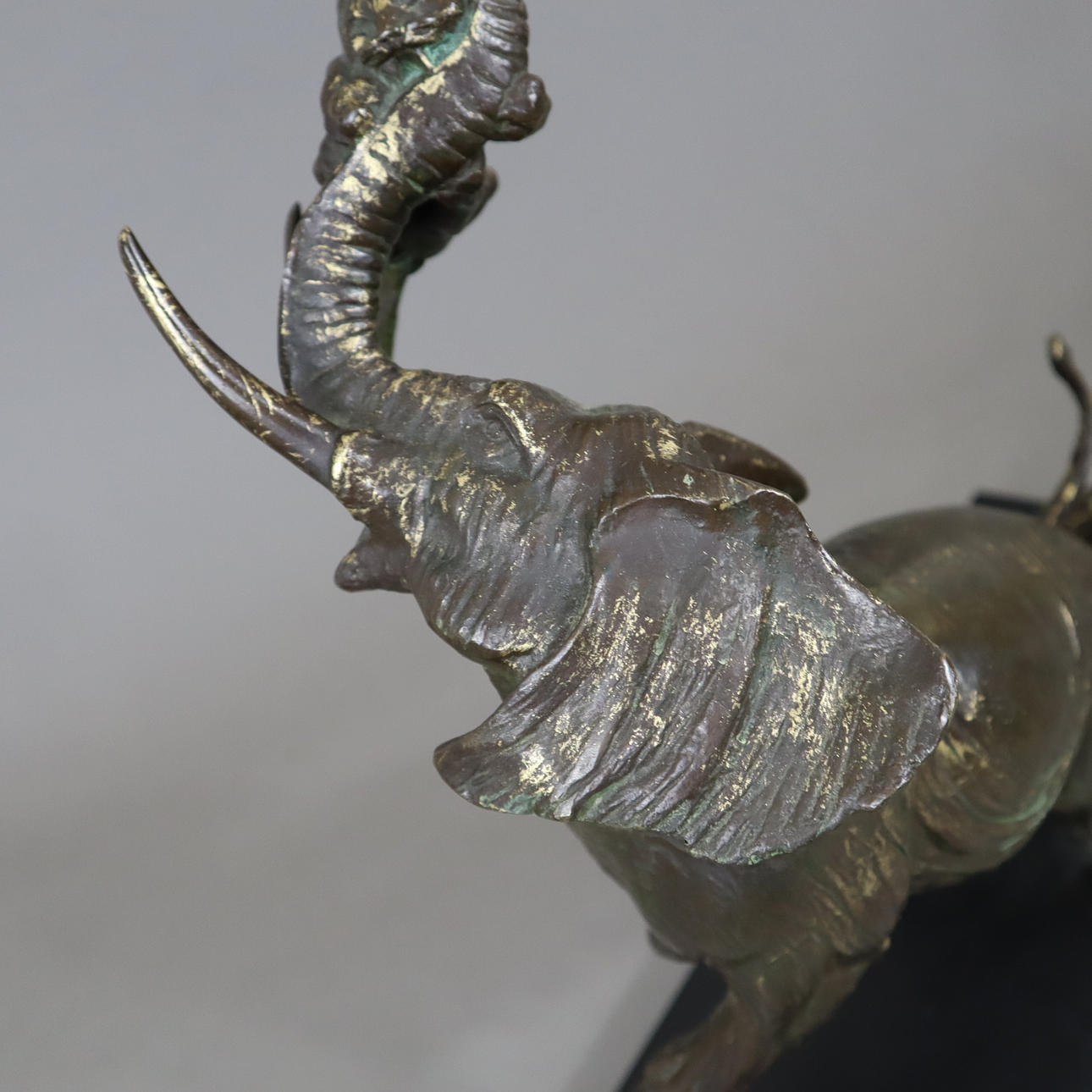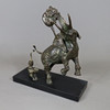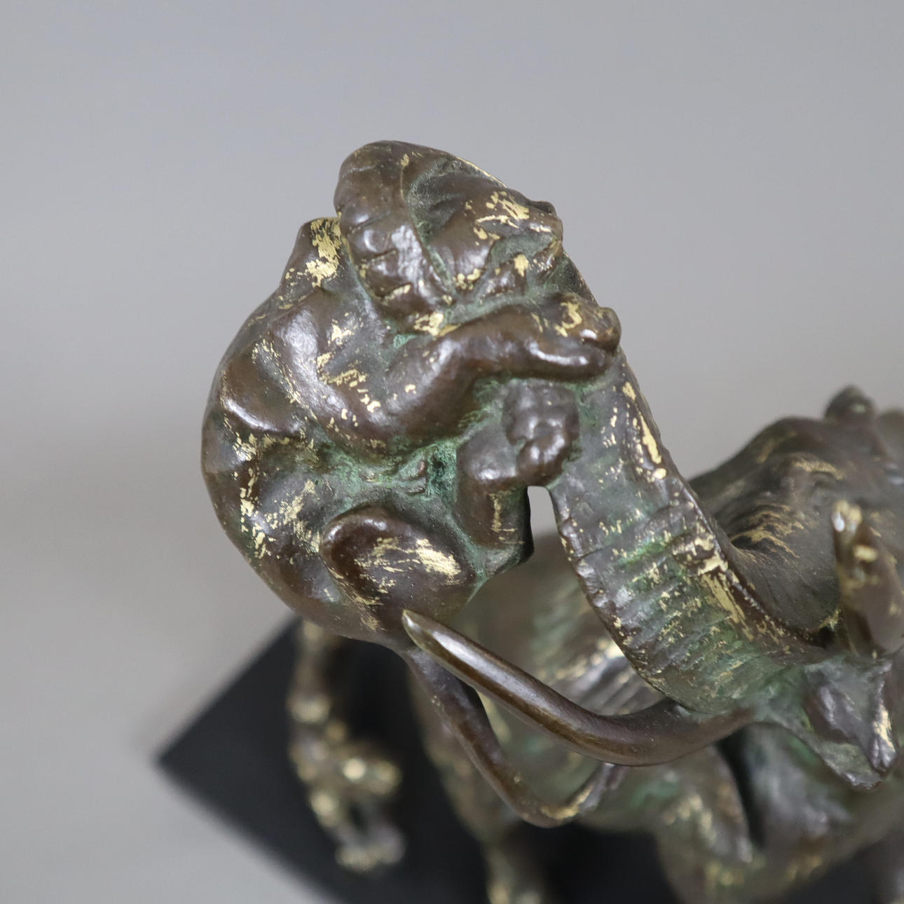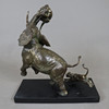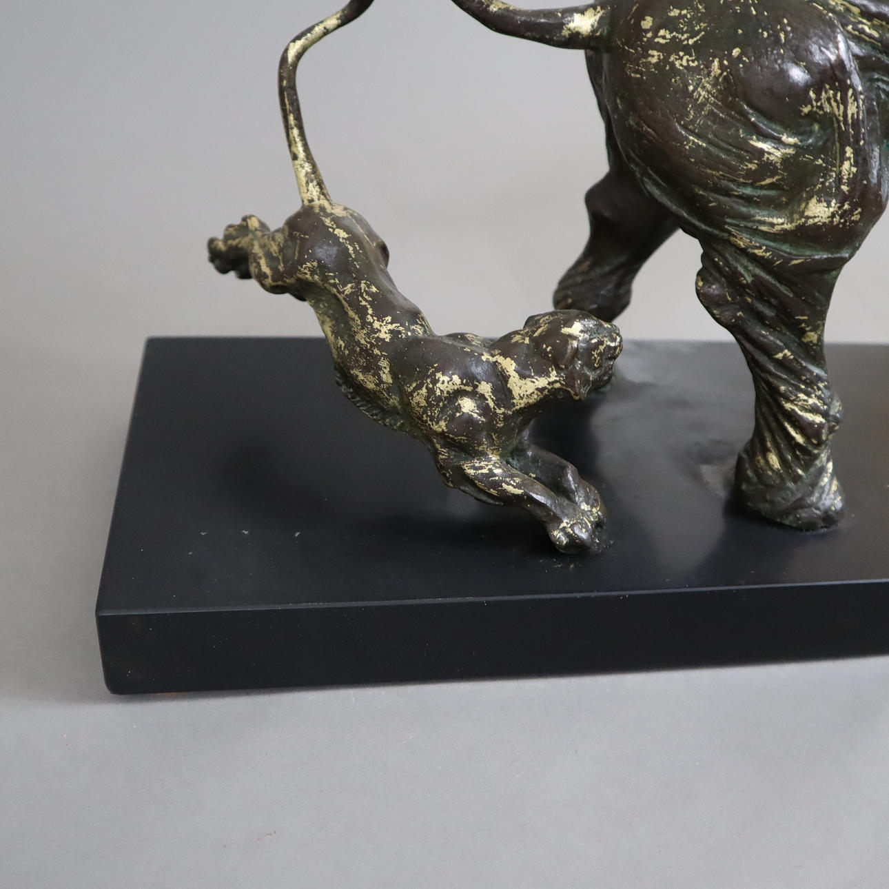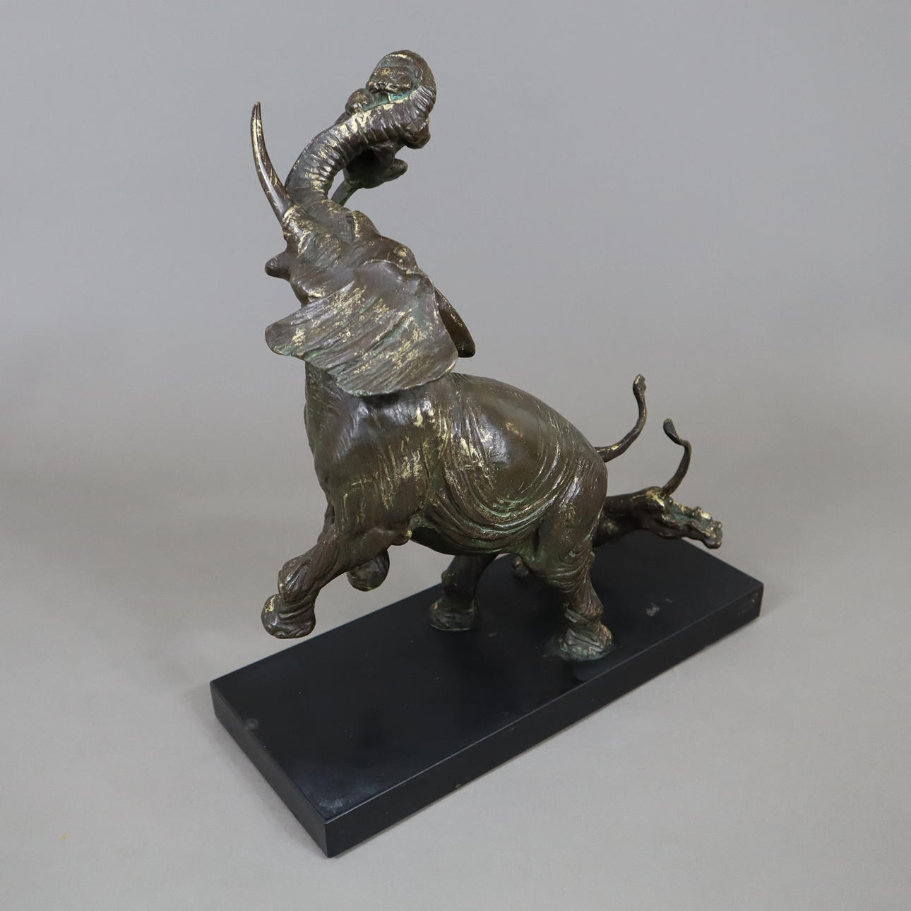 3013429. ELEPHANT FIGHTING TWO LIONS - Sculpture, brass, bronzed.