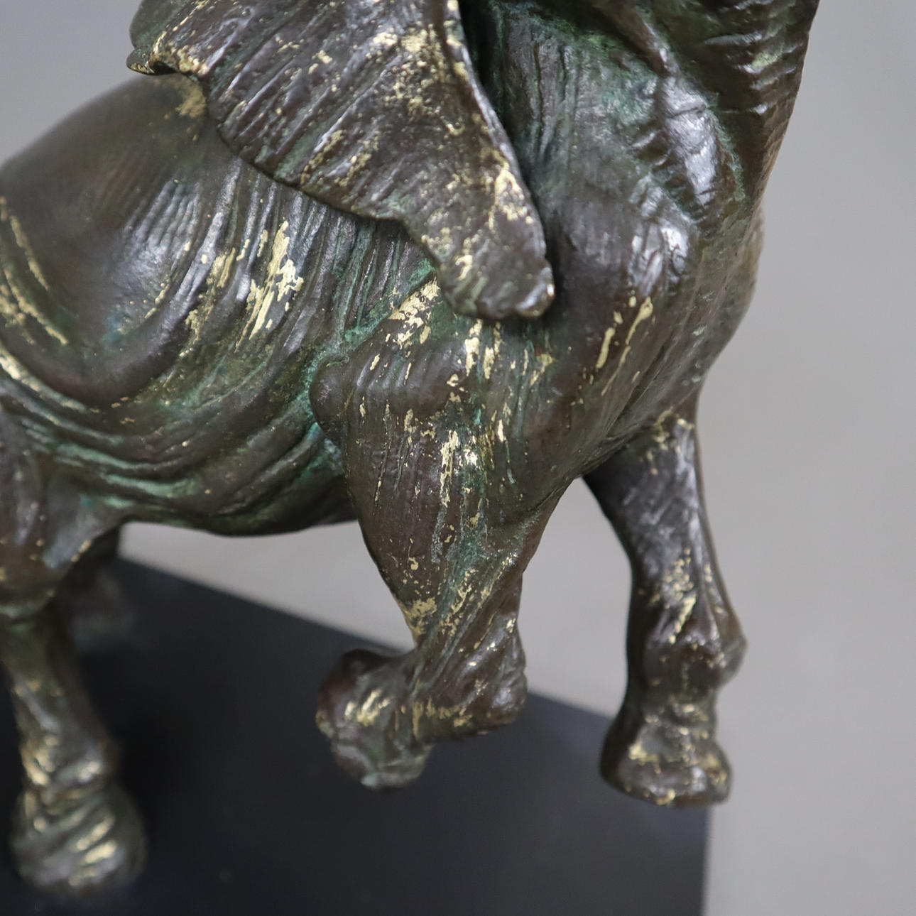black stone base with minor damage on the underside, total height: approx. 35cm, base dimensions: approx. 34.7x14x3cm.