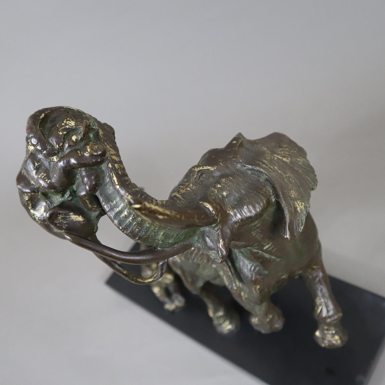 ELEPHANT FIGHTING TWO LIONS - Sculpture, brass, bronzed.