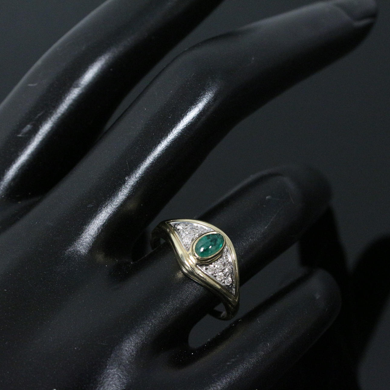 3015477. Ring with emerald and diamonds, 585 yellow gold.