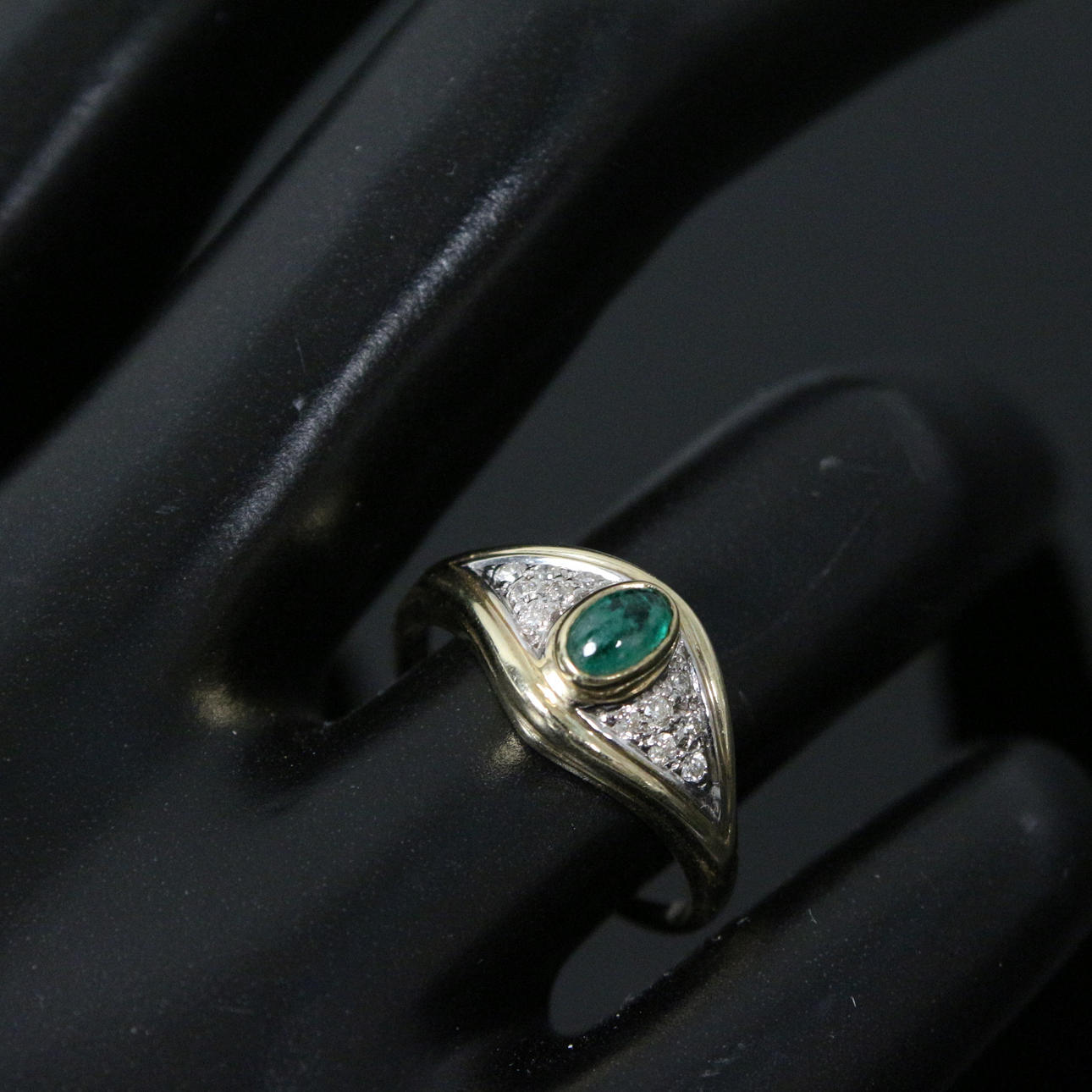 Ring with emerald and diamonds, 585 yellow gold.