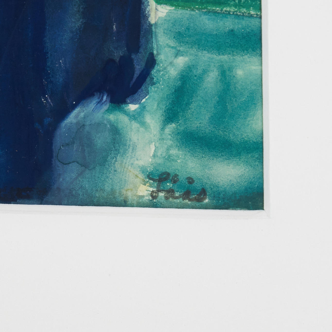 3016594. EVY LÅÅS. Composition with cat, watercolor, signed.