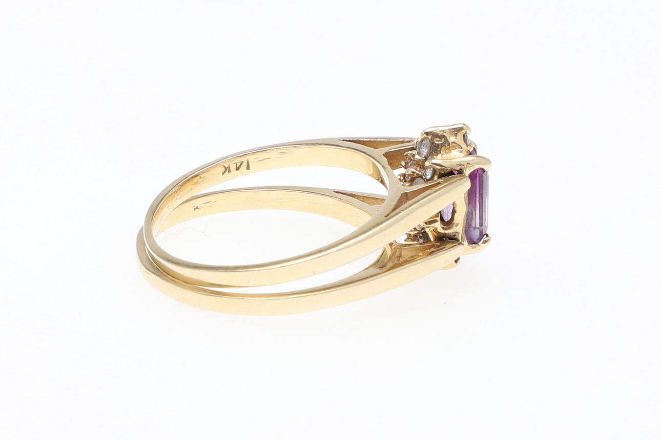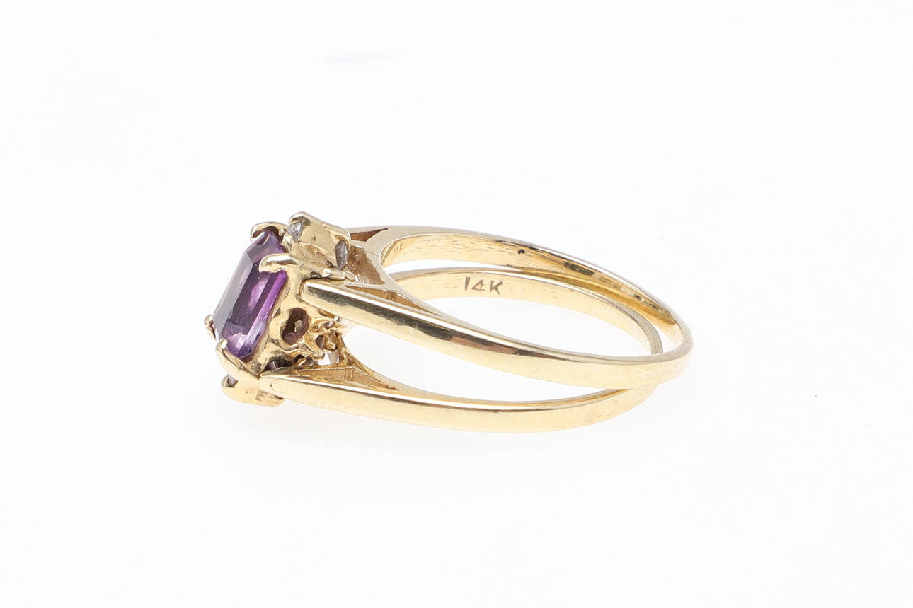 The ring designed with two shanks that flip over to show a diamond cluster one side and an amethyst and 2 diamonds the other 4.4g size N 1/2.