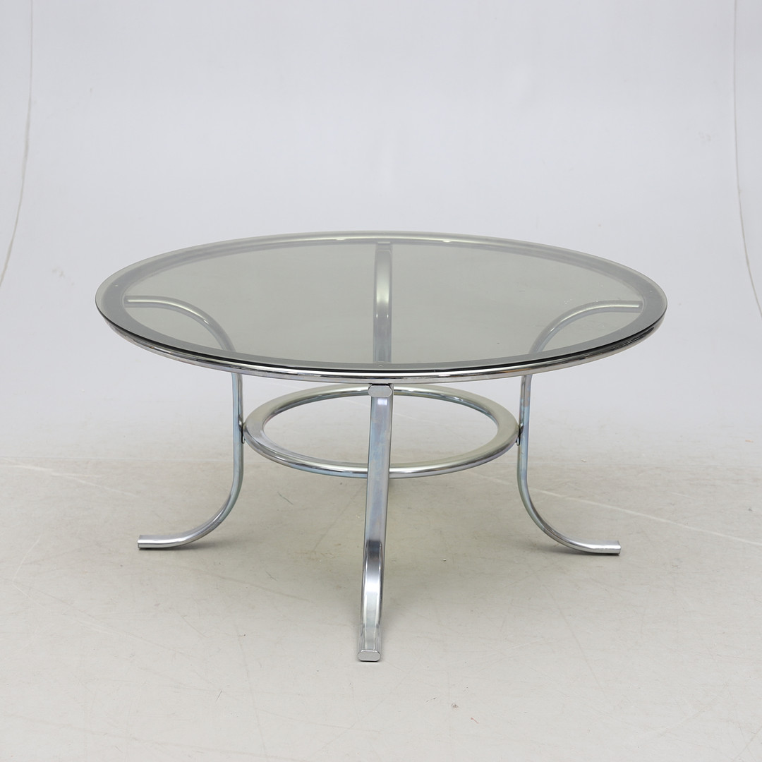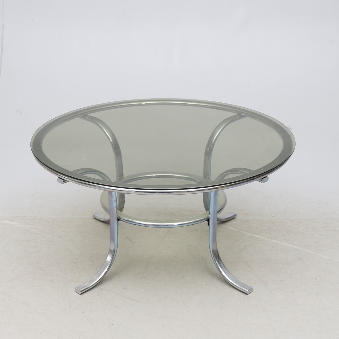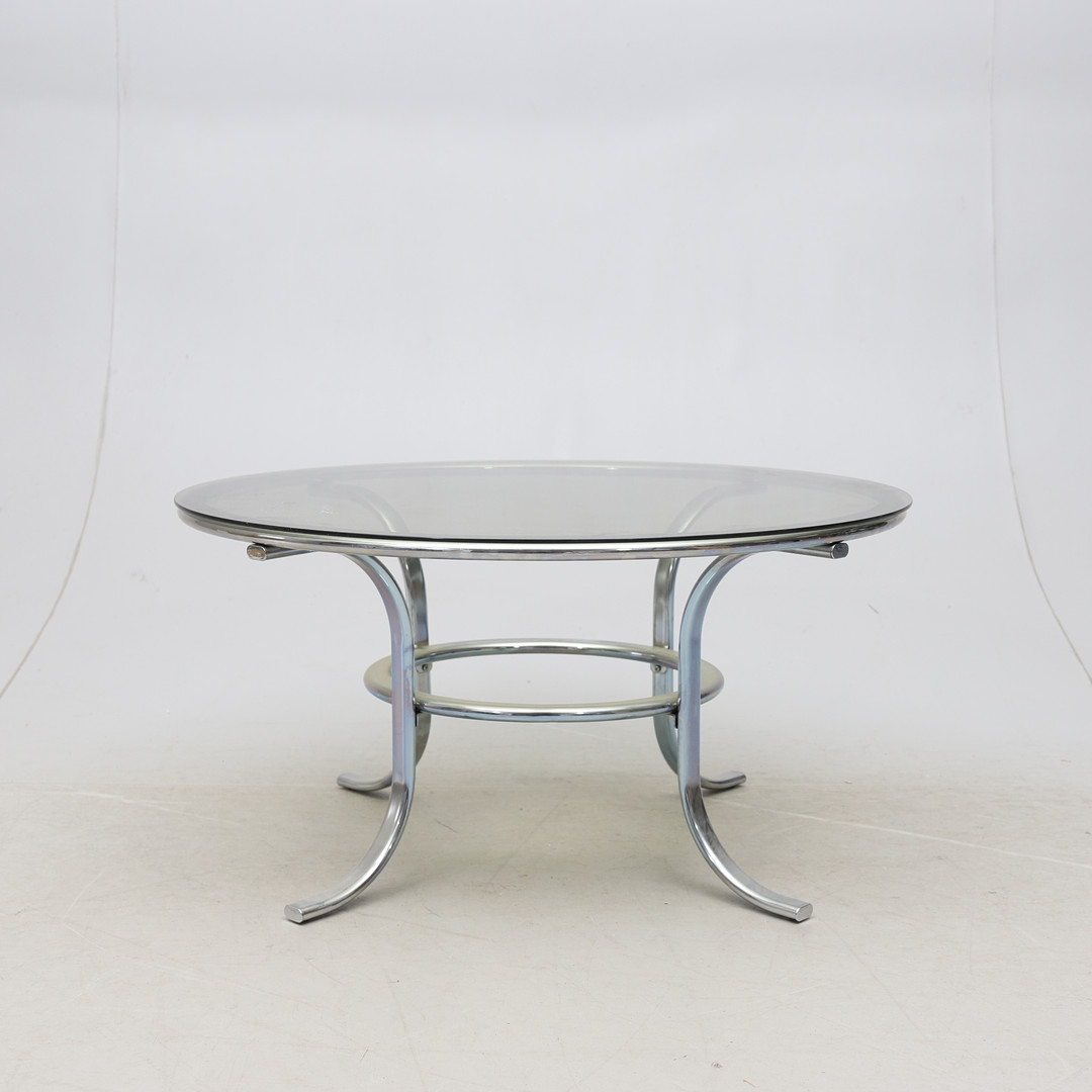 3018605. COFFEE TABLE, steel pipe and glass.