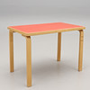 L-leg in lacquered birch, red linoleum board. Length 100 cm. Width 60 cm. Height 71 cm.