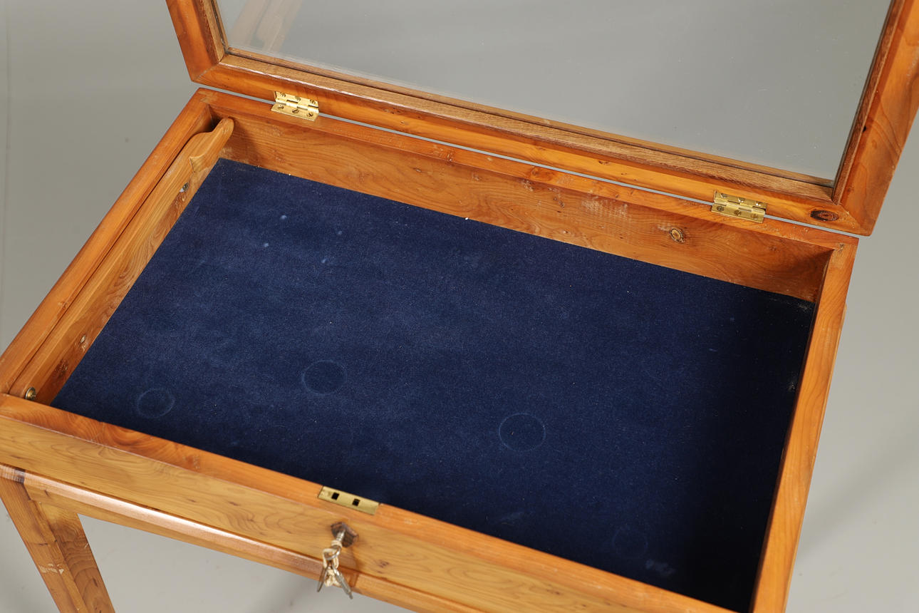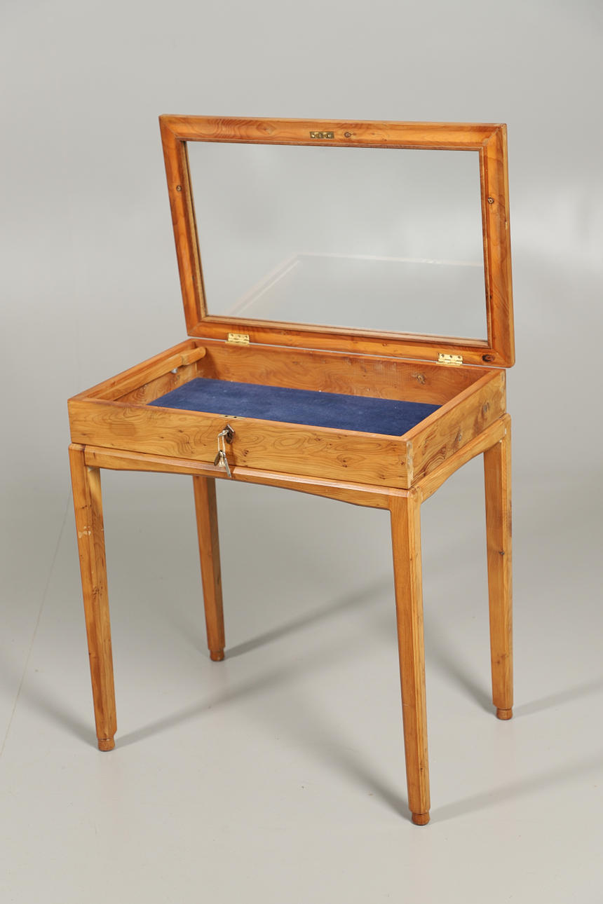 A YEW WOOD DISPLAY TABLE.