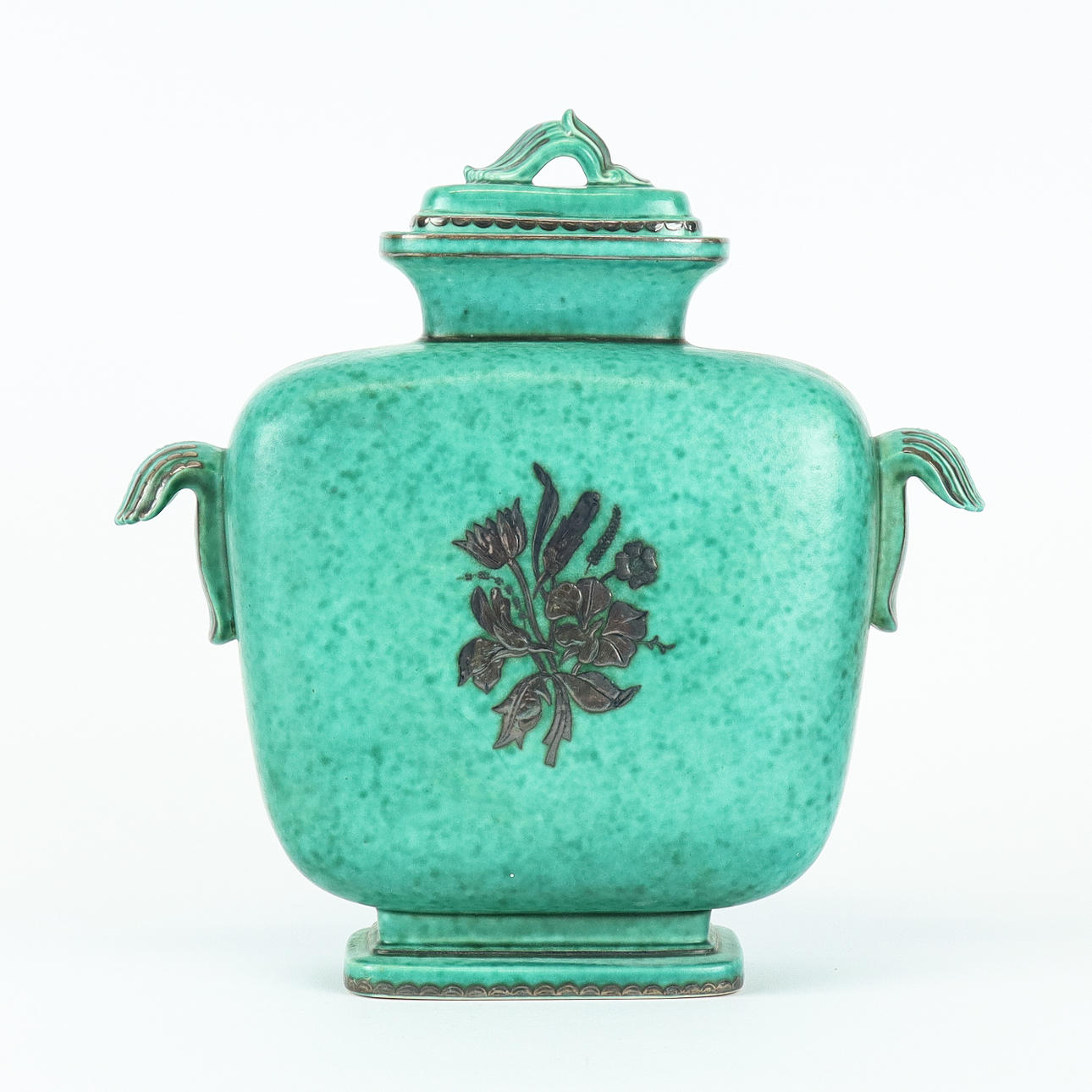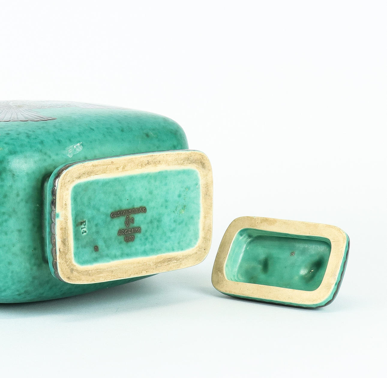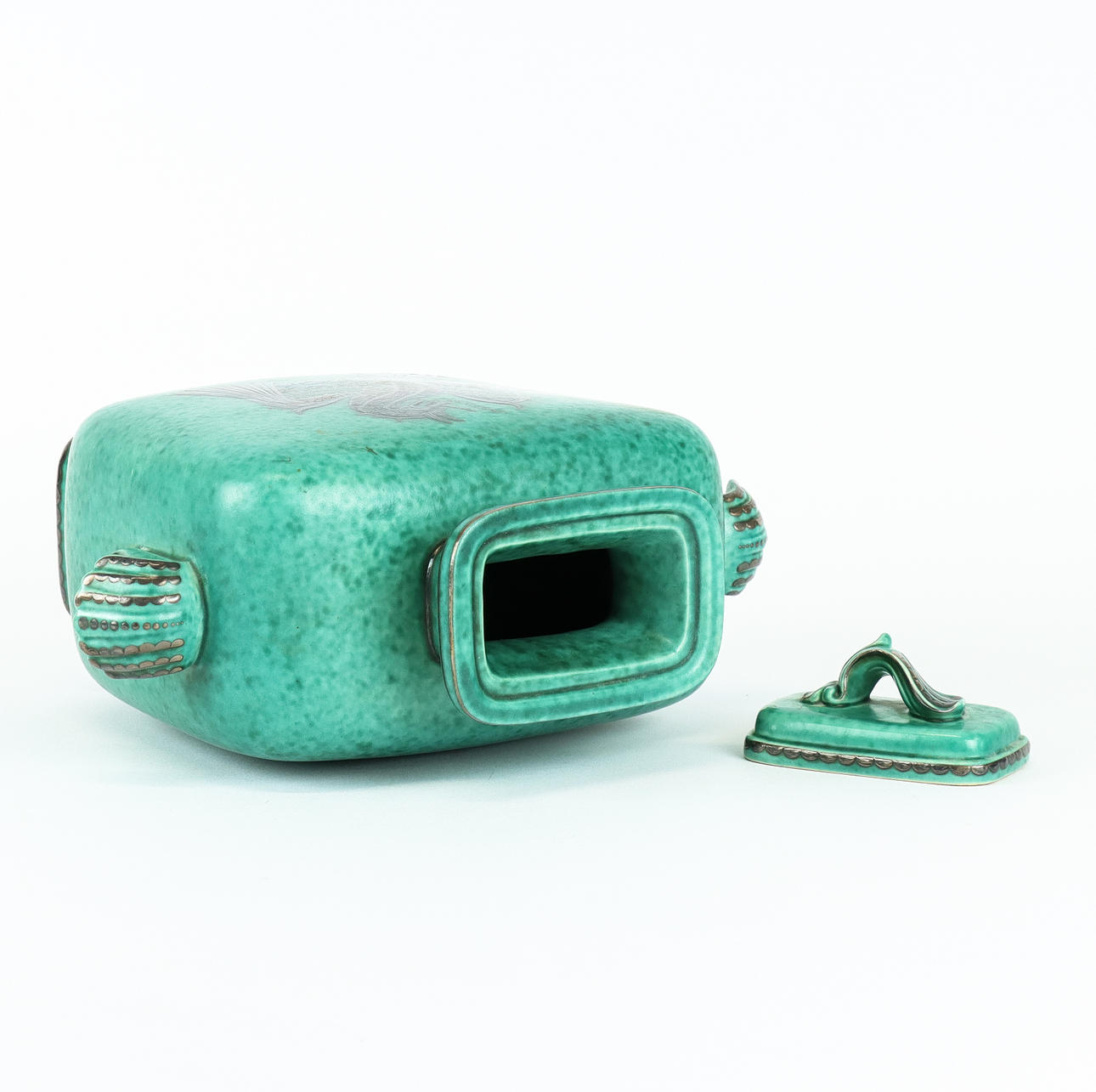 Stoneware with silver decoration.