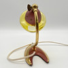 Antique small table lamp, pink and gold with yellow glass shade. Requires 1 x E14 stove bulb. It comes with a new LED bulb.