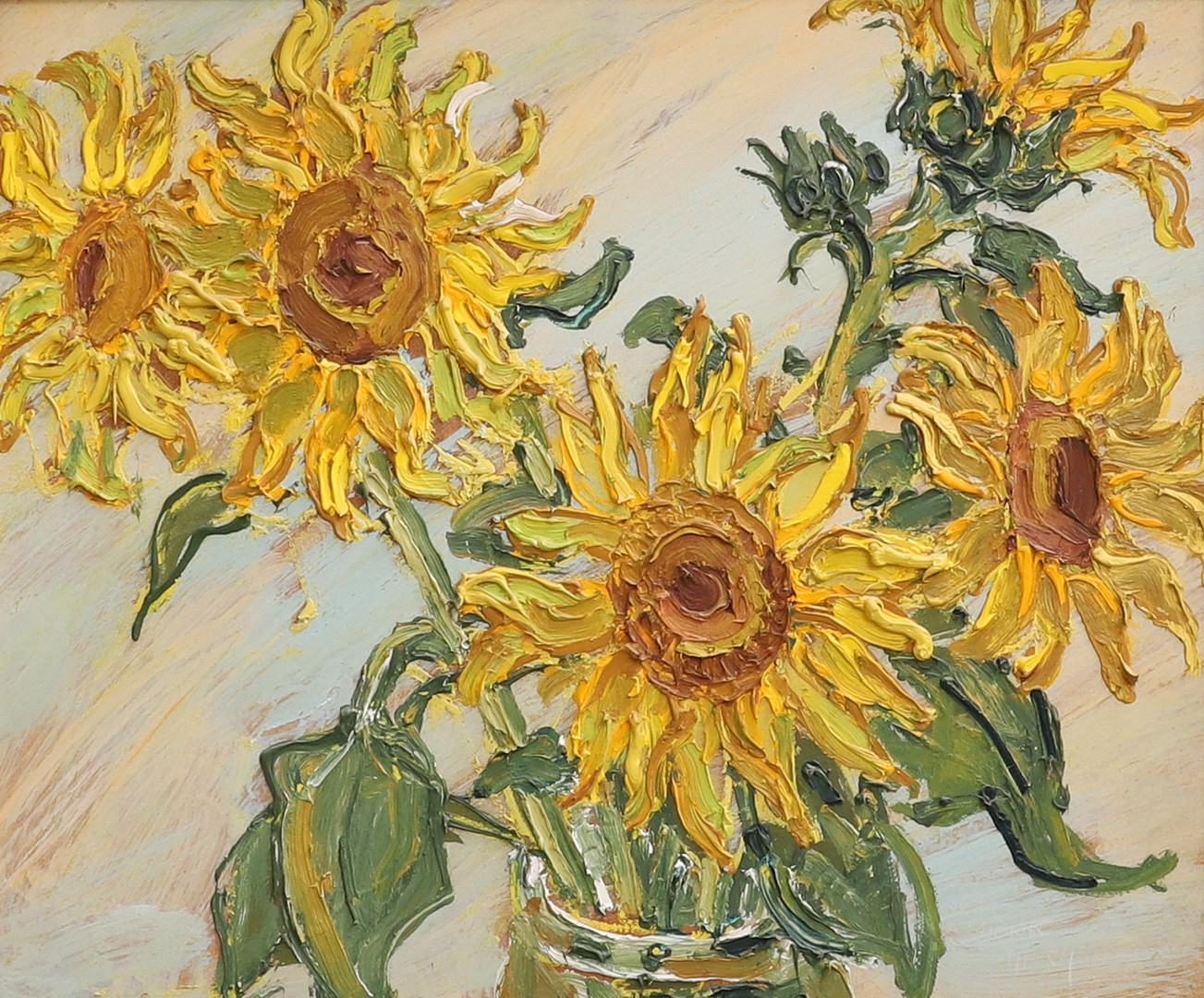 3028365. LÁSZLÓ TENK (HUNGARIAN, B.1943). SUNFLOWERS (NAPRAFORGÓ).