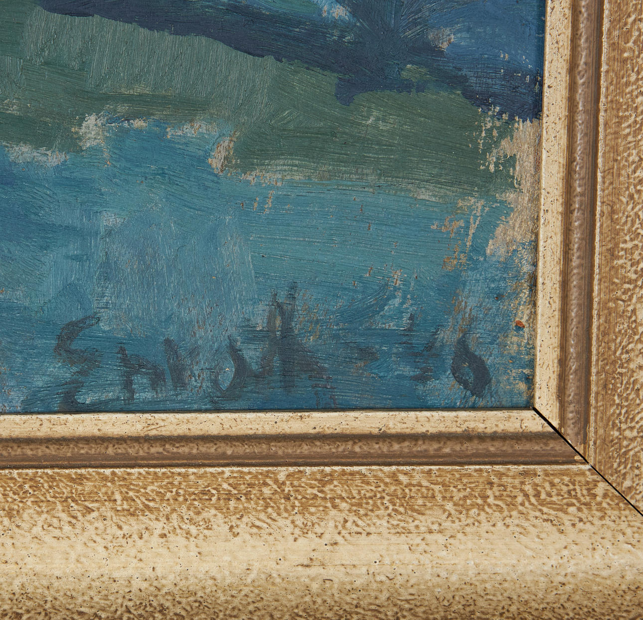 3032178. ERIK ENROTH. Cityscape with bridge, oil on Board, signed and dated 1946.