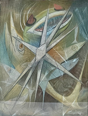 MAX MIKAEL BOOK. mixed technique on Board, "Deluminum Sve" 10/20, signed on verso, dated 1999.