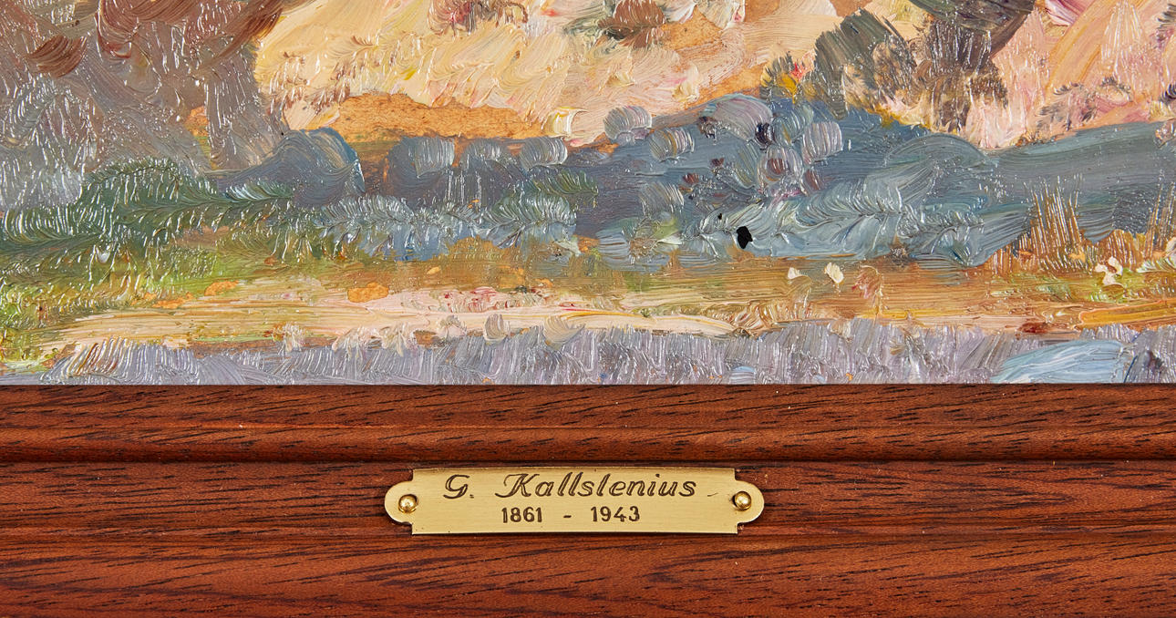 Performed in the 1890s. A painting of the same size, also done on Board, named "Tallers, Vänern", was included in the auction of the artist's estate at the Swedish-Franska Art Gallery (List of Gottfrid Kallstenius' legacy collection of his own and other artists' works, 30 March 1944, no . 111).