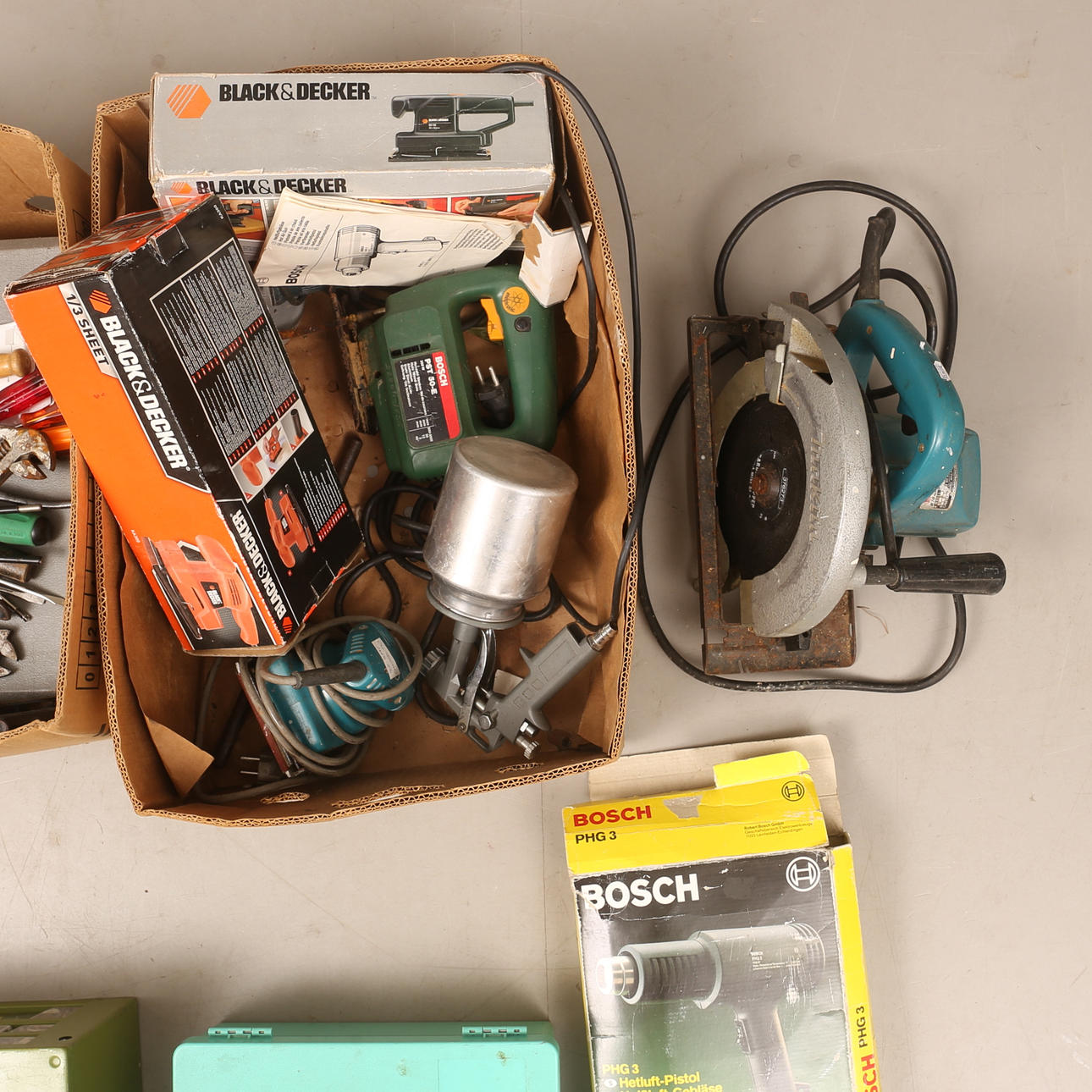 E.g. sander, hot air gun, circular saw, jigsaw.