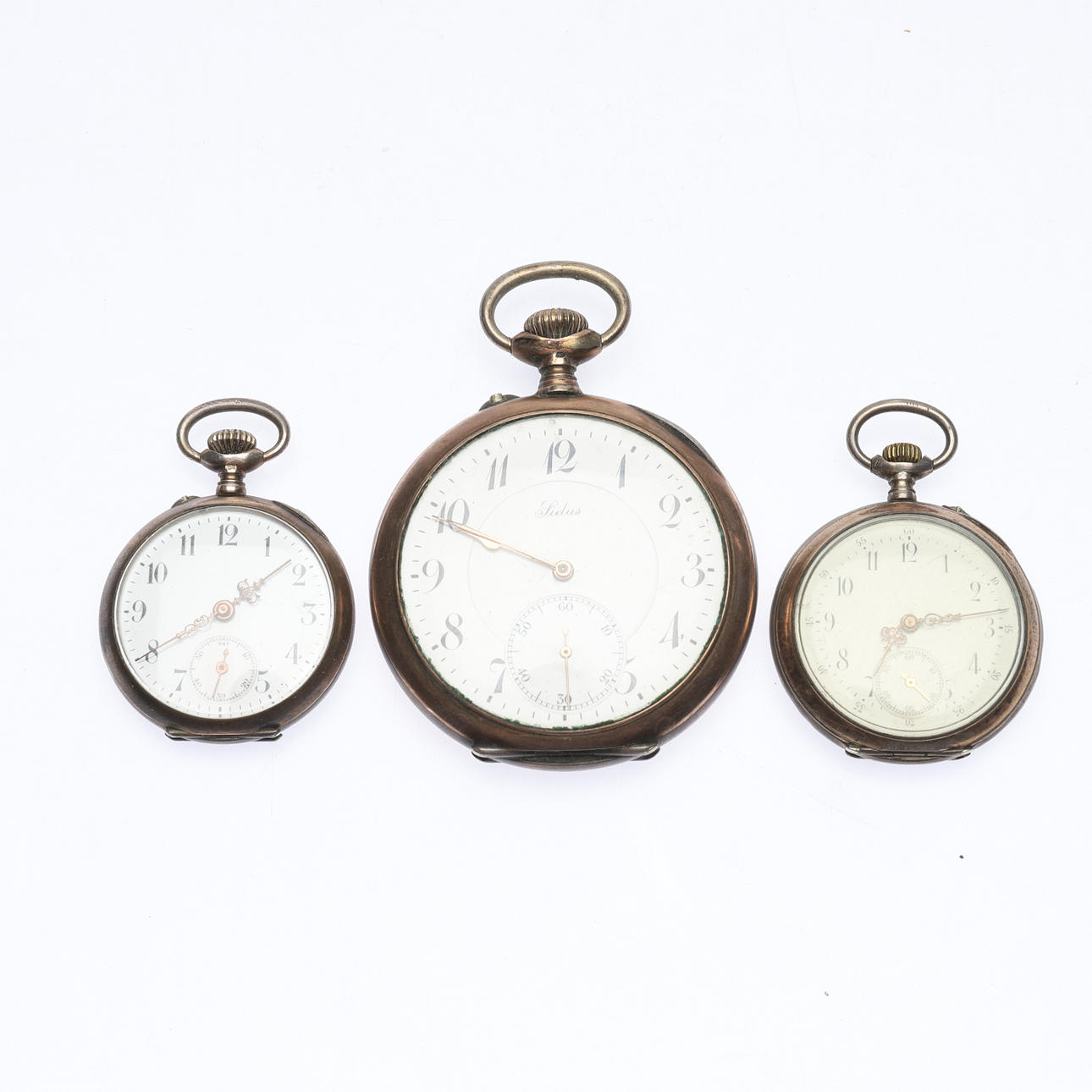 Diameter approx. 33-52 mm. Total weight of the watch approx. 158.5 g. Chains in white metal, brass and silver.