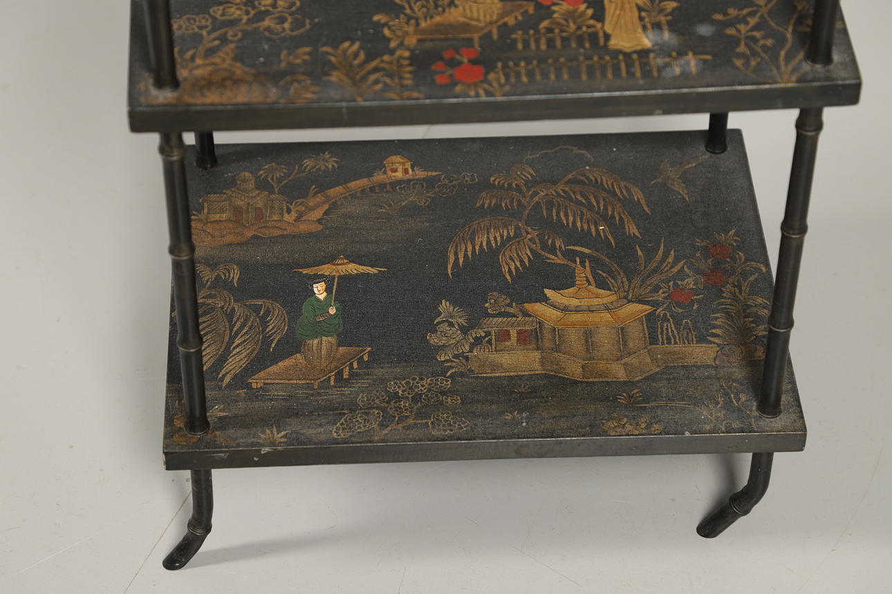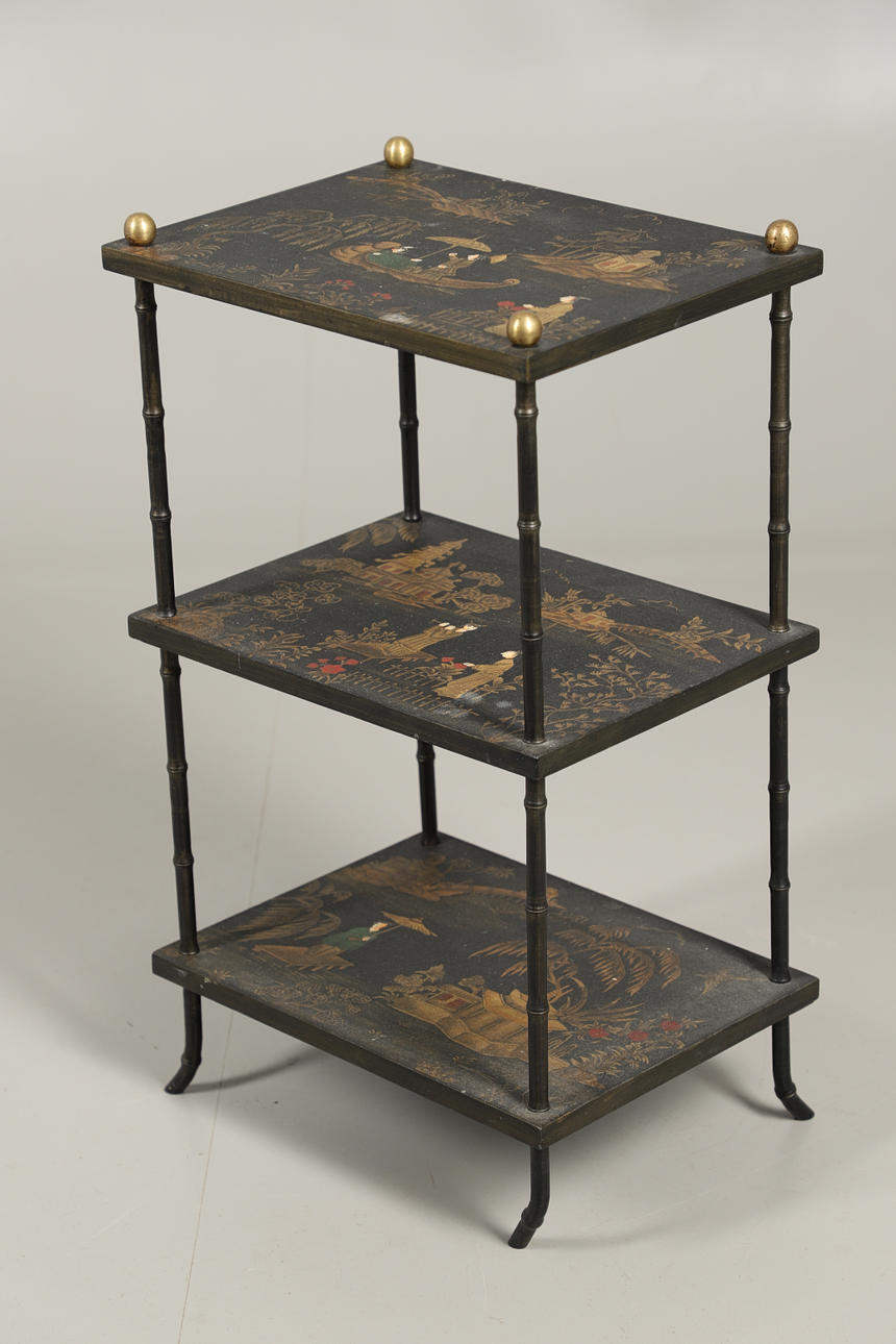 A MODERN 'CHINOISERIE' THREE TIER ETARGE.