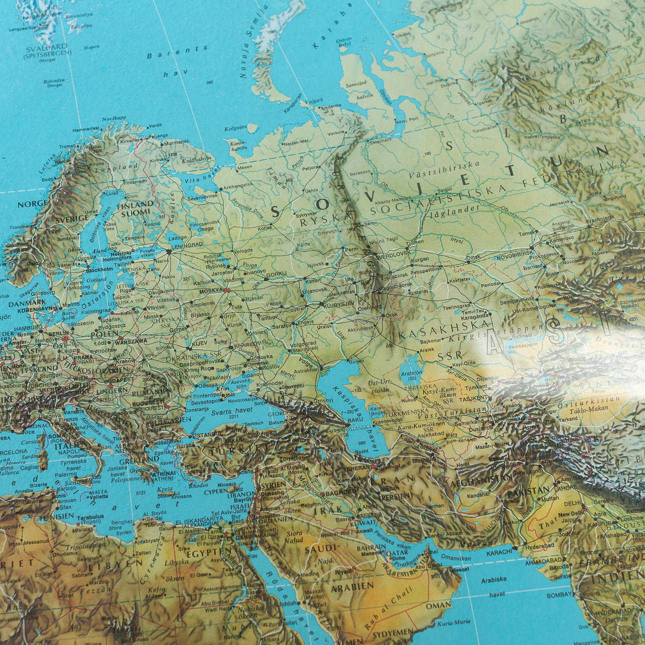 3044826. COFFEE TABLE, with glazed world map, late 1900s.