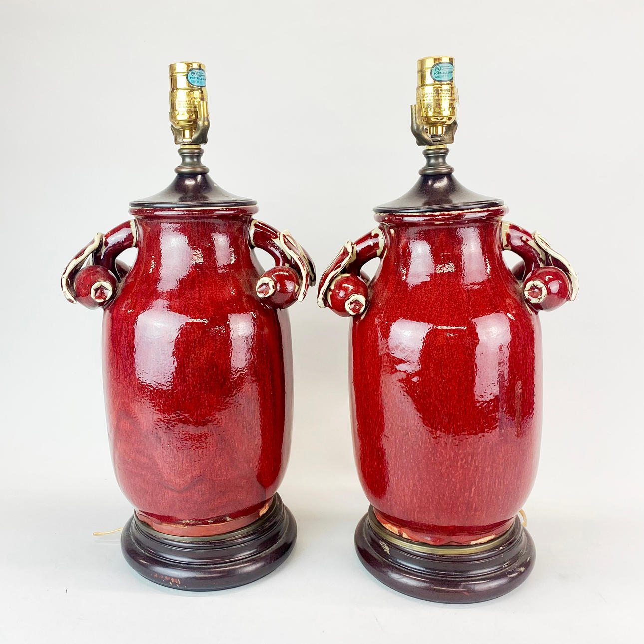 A superb pair of Chinese sang de boeuf glazed stoneware vases mounted as lamp bases H. 47cm.