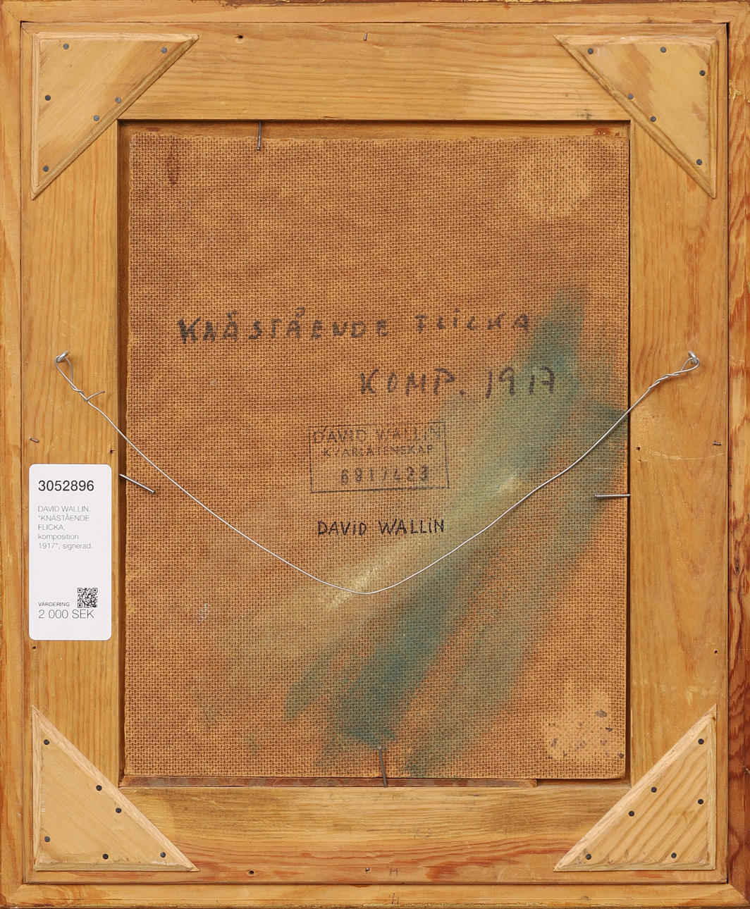 3052896. DAVID WALLIN. "KNEELING GIRL, composition 1917", signed.