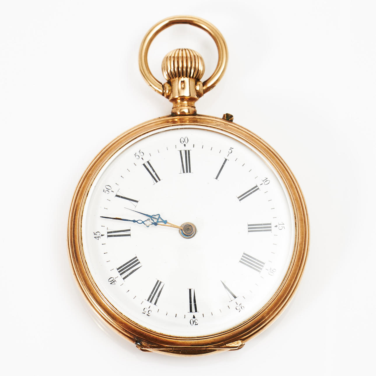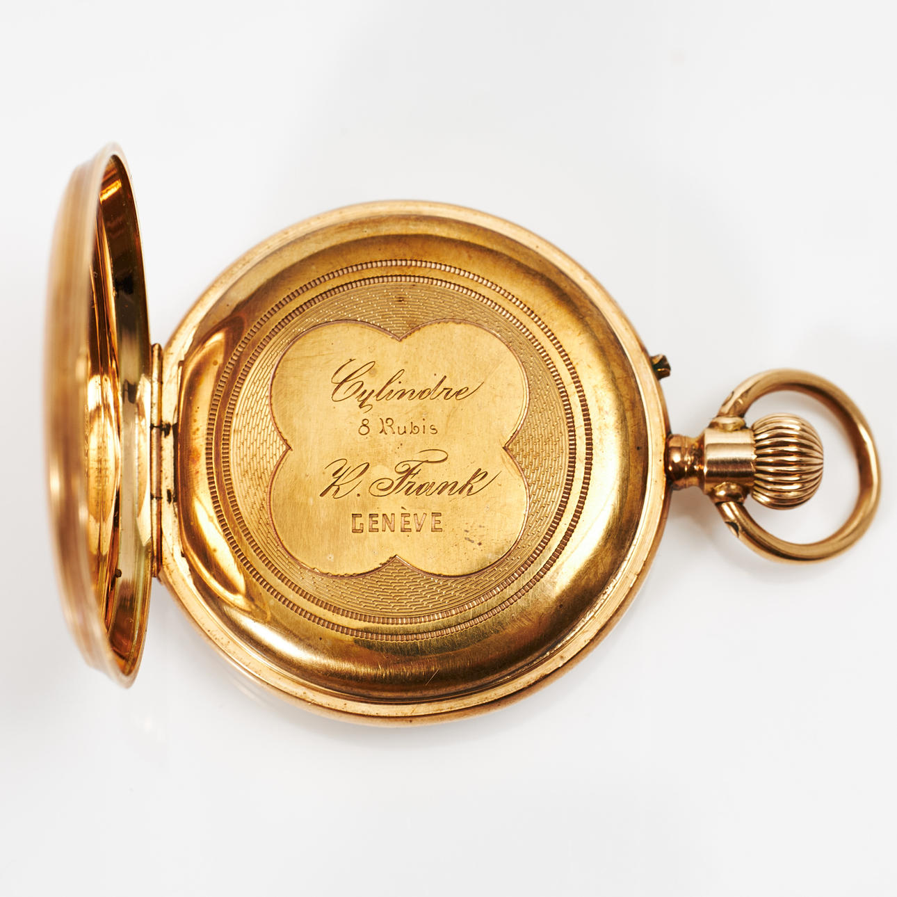White-enamelled dial, inner lid in metal, cylinder movement, diameter 35 mm, weight approx.