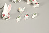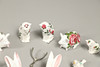 Majority of figures manufactured in pairs by Plichta, in the forms of White floral decorated Cats (Largest 15cm high), pigs, Rabbits, Koala bears and birds. Along with two Wemyss pig figures and a Metal spur. 17 pieces total. (17).