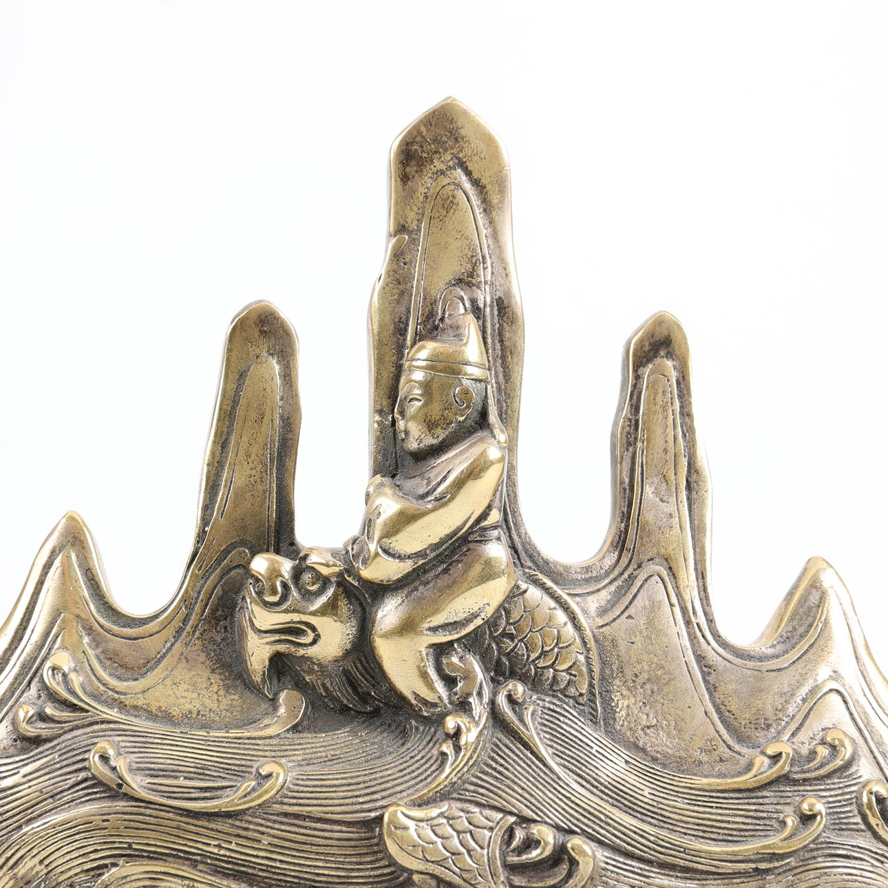 BRUSH STAND, silver-plated brass, late Qing, China.