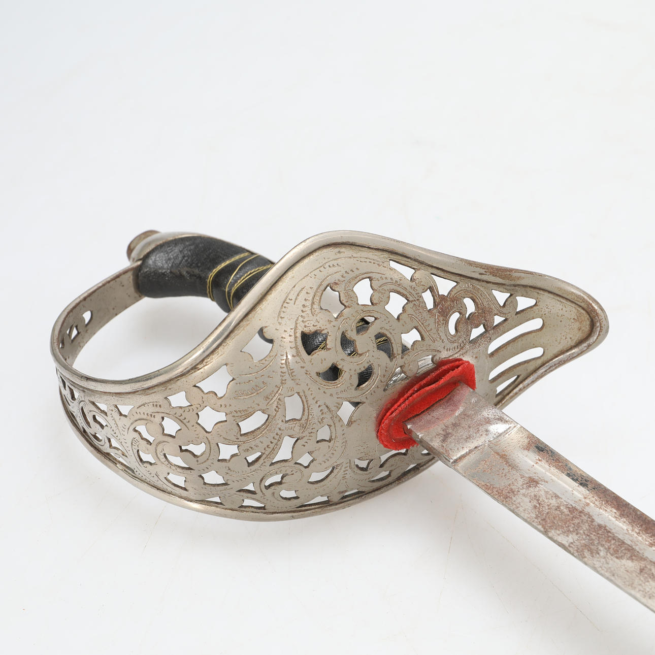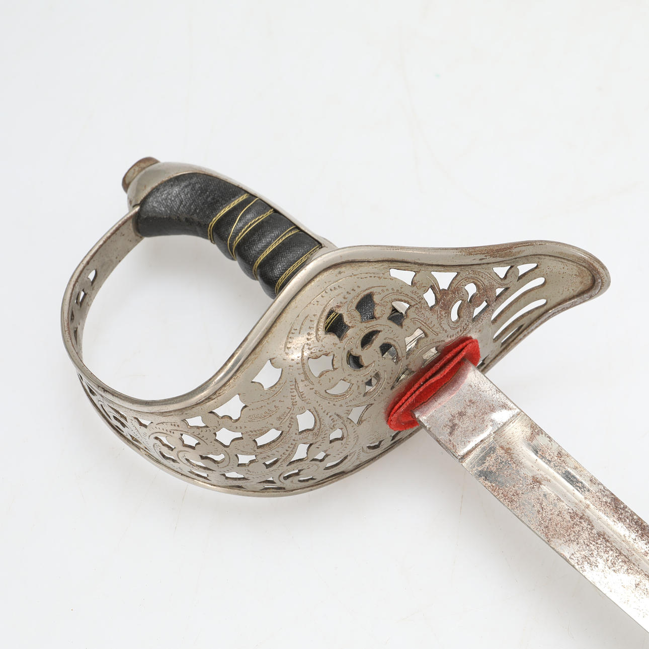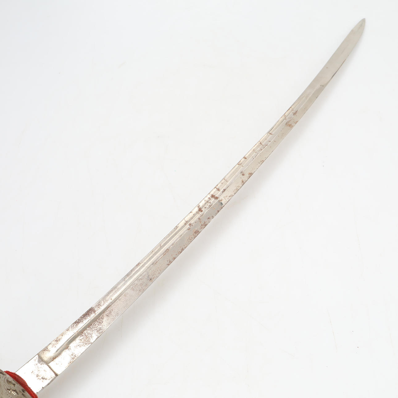 Punch marks. Tarnished blade.