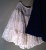 Skirt, length 69 cm, bottom width 155 cm, waist width 41 cm. Petticoat, length 64 cm, bottom width diameter approx. 125 cm, waist width 42 cm.