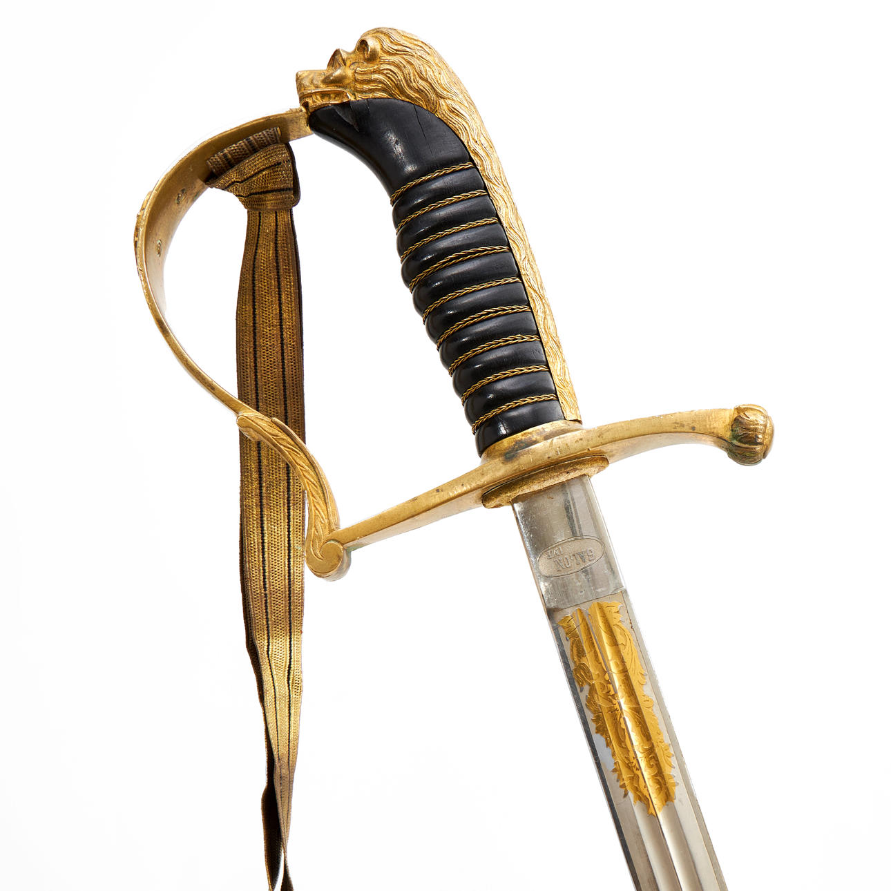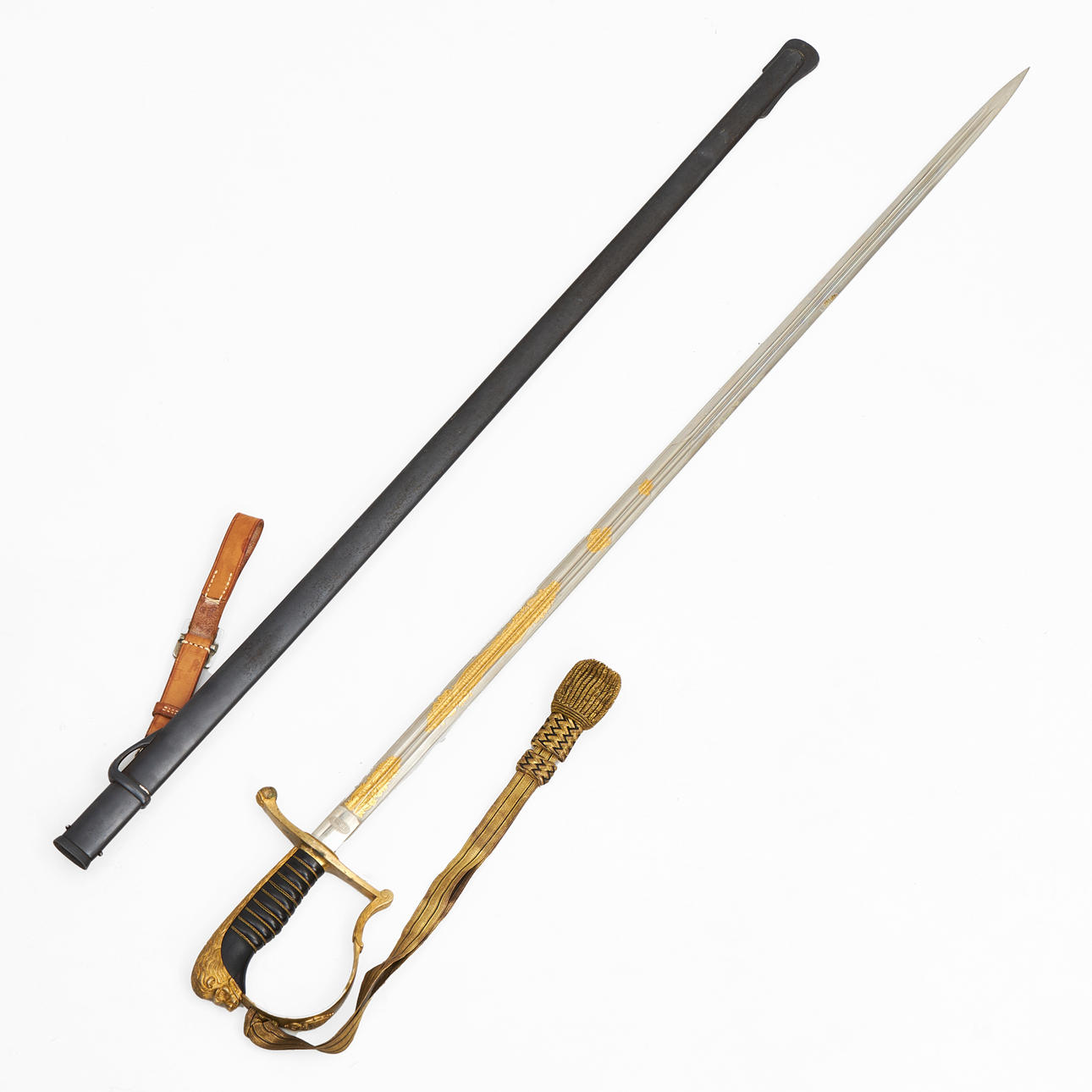 Blade marked Galon Imp. On the blade; "The Fatherland" and "The King". Blade length approx. 86 cm, total 102 cm. Wallet included.
