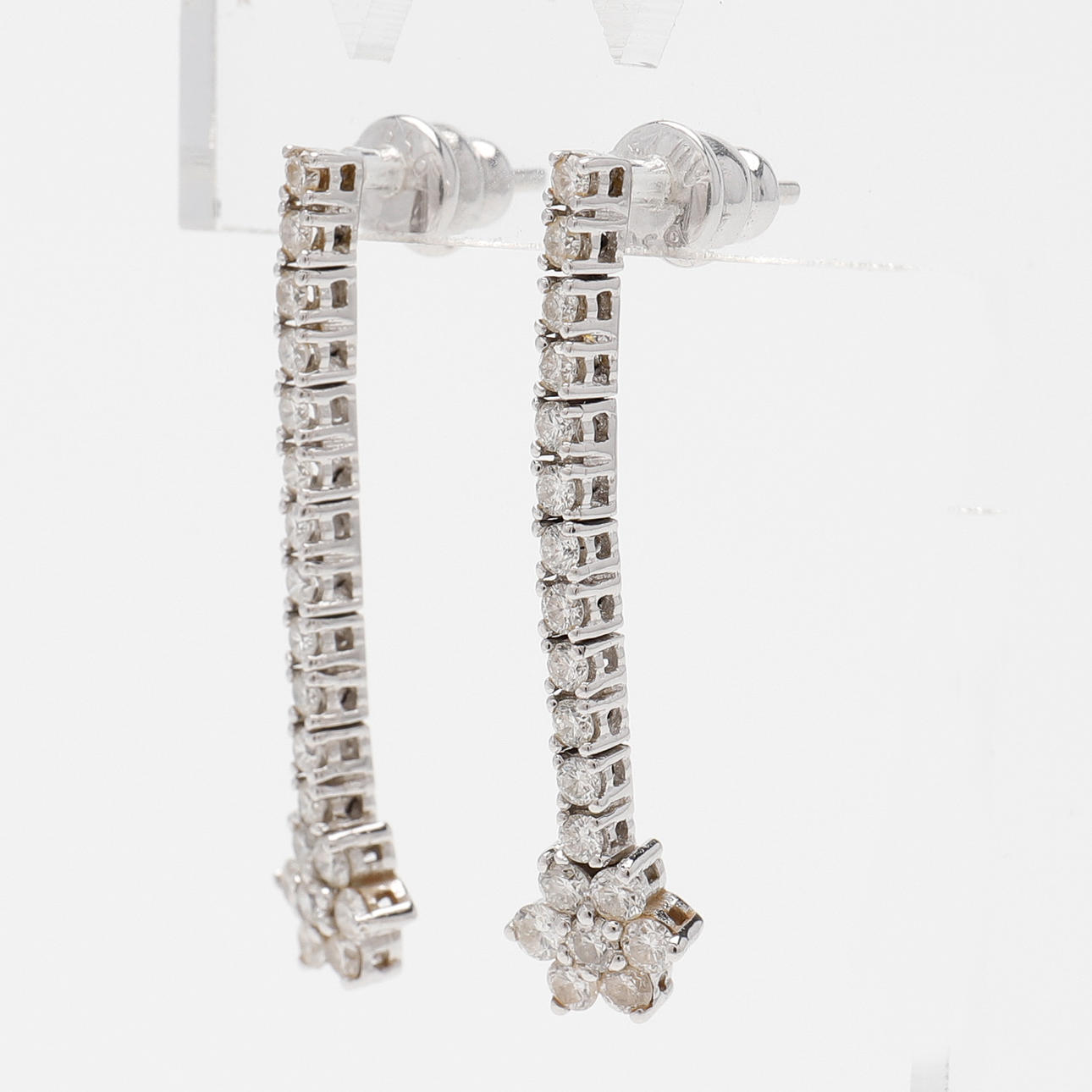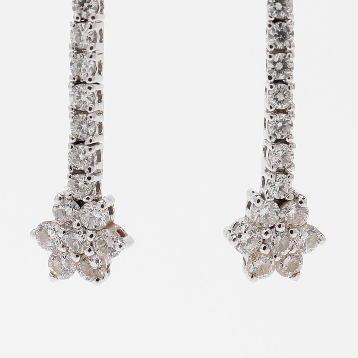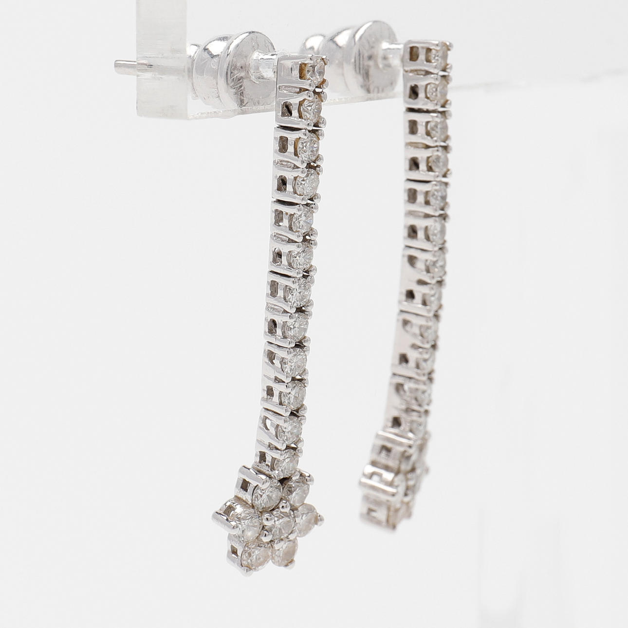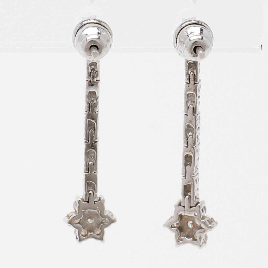 Each with 19 brilliant-cut diamonds totaling 0.56ct as per engraving set in 18k white gold, length 35mm, weight 4.7 grams.