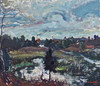 Minor stains. Slightly unstretched canvas.