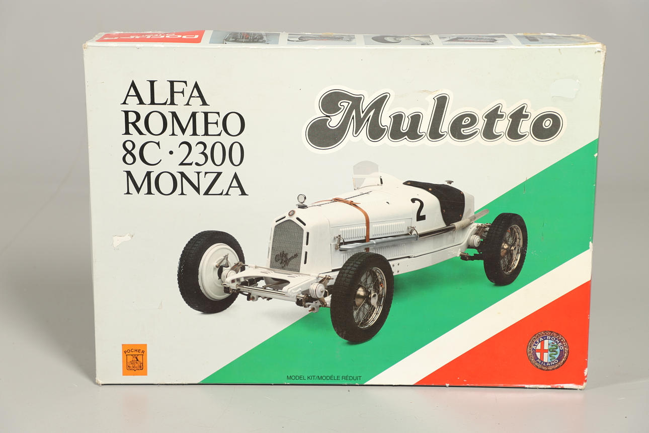 An unused model kit, Alfa Romeo 8C.2300 Monza Muletto, boxed and with instructions. Box 59cms by 41cms.
