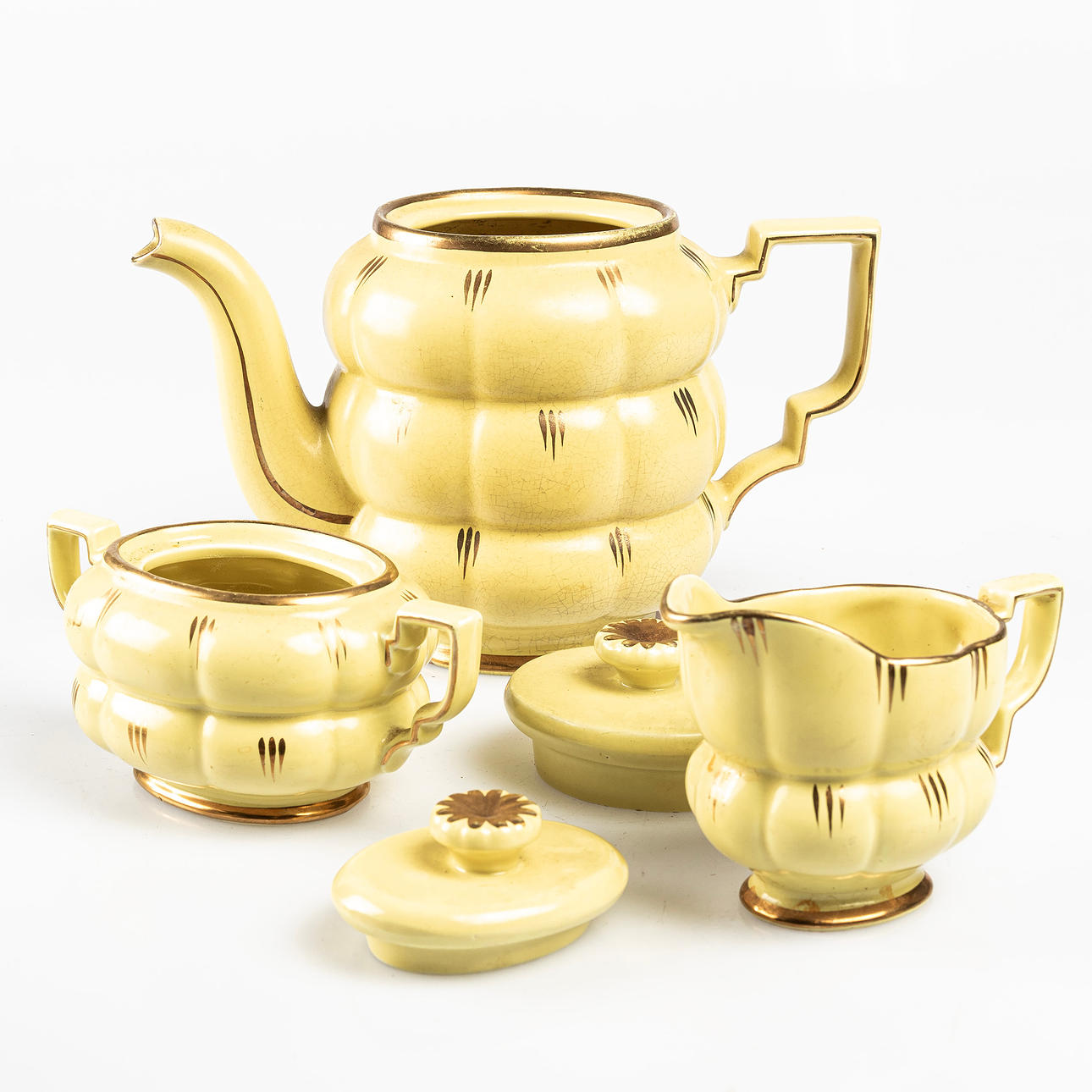 7 plates 7 cups with 8 saucers Sugar bowl with cover Milk jug Coffee pot Coffee pot height for reference: approx. 17 cm.