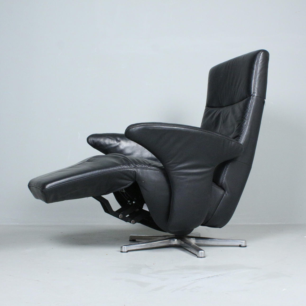 Hukla, armchair/ recliner, cast aluminum base, leather,