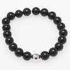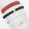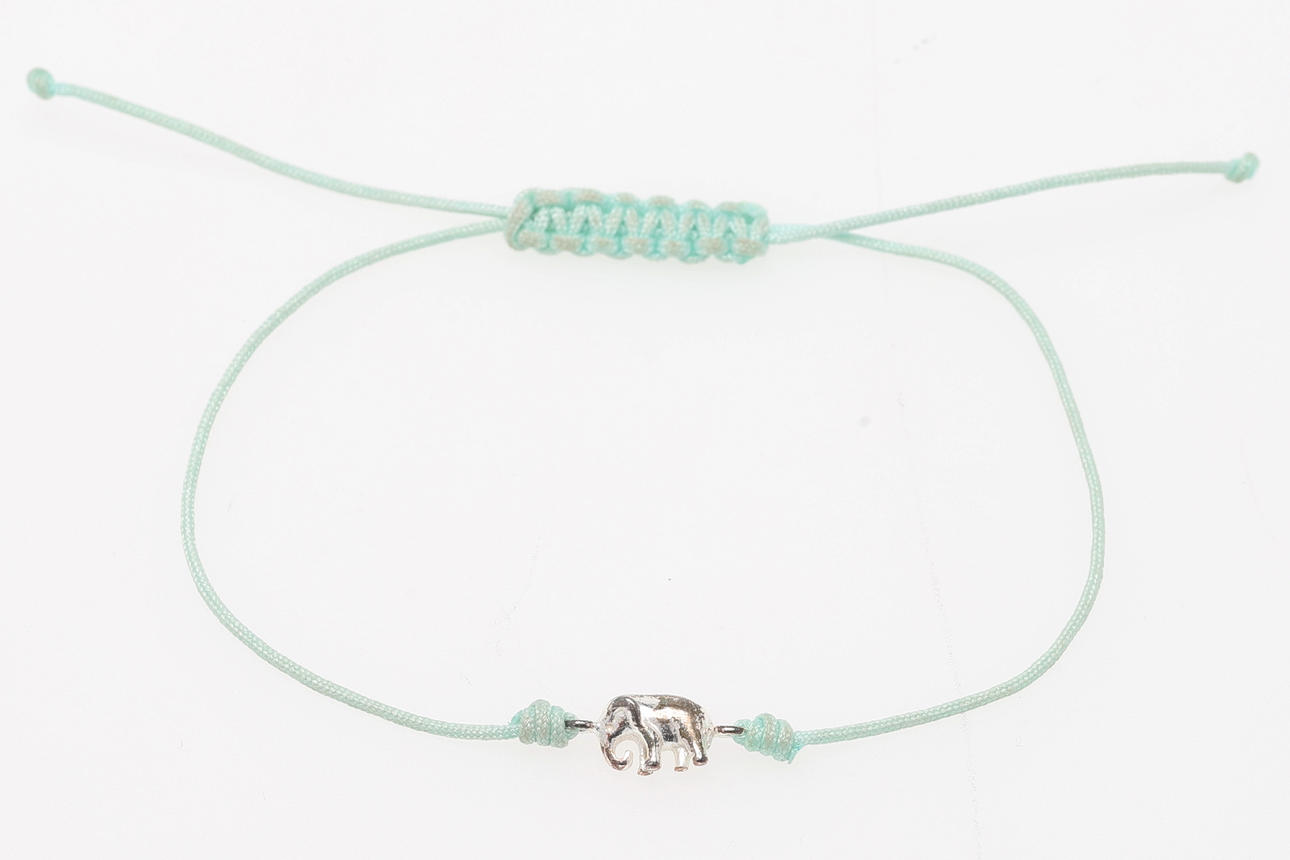 Bracelet, powder pink silicone, relief pattern with flowers, elastic, strolek M, diameter approx. 6 cm, width approx. 1.2 cm, Fullspot, Italy Bracelet, turquoise textile band with elephant in sterling silver, adjustable. Length of elephant approx. 0.8 cm Bracelet, black onyx beads & ball in sterling silver, elastic, diameter of beads approx. 0.8 mm, diameter of bracelet when resting approx. 6 cm Bracelet, white double leather bracelet, total length approx. 42 cm, width approx. 1 cm.
