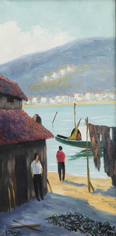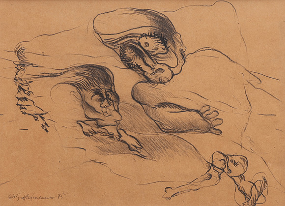 3087469. LARS LARSSON. Oil on uplifted canvas, figural composition, signed and dated -74.