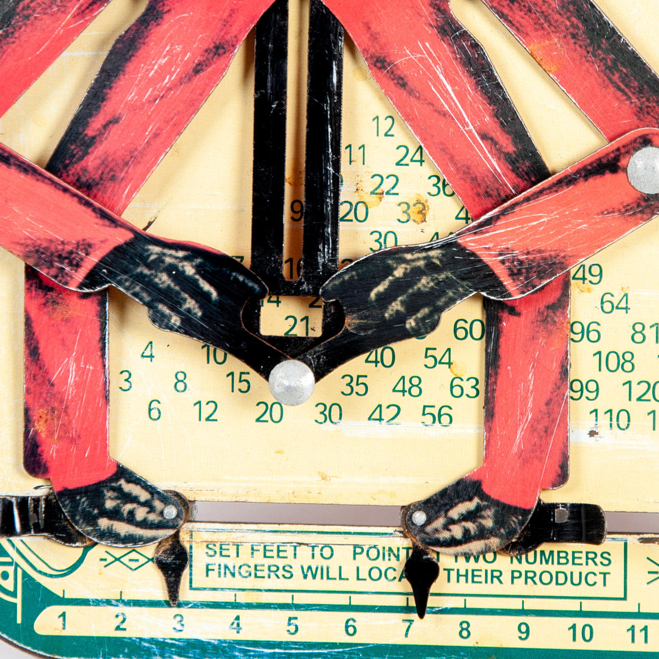 Works in such a way that you put the monkey's feet on two numbers, between the hands the monkey shows the result.