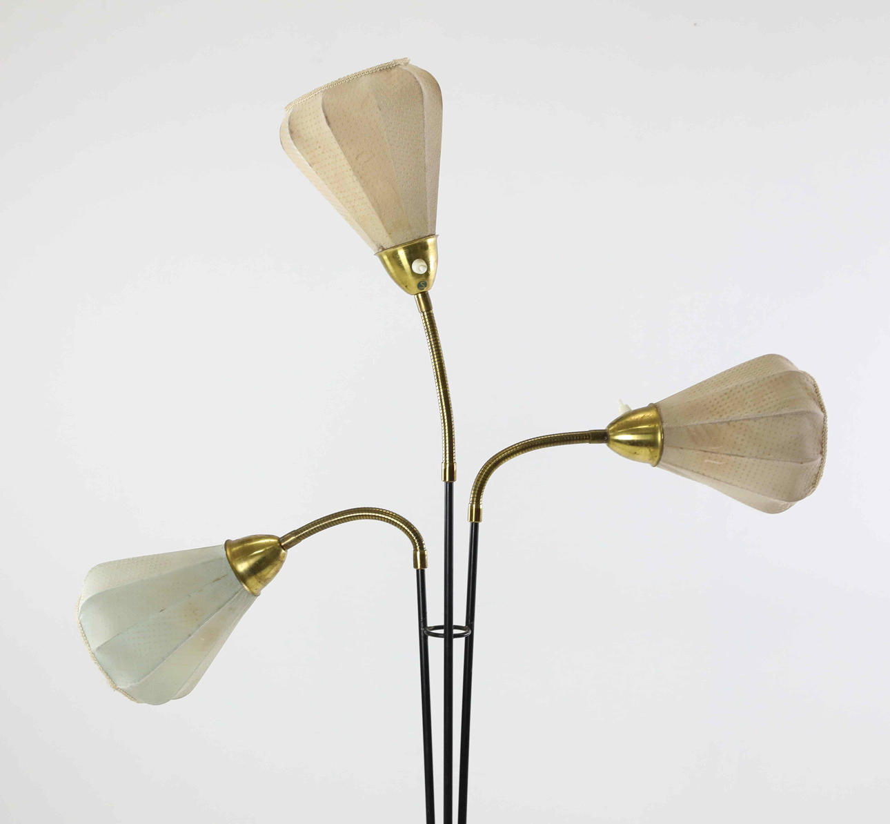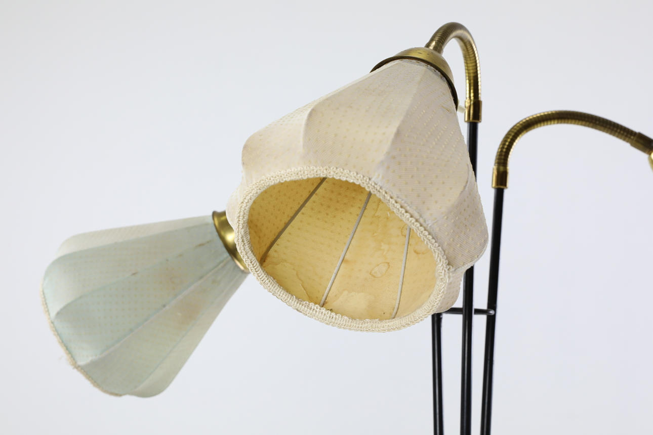 Articulated arms, original fabric on screens. Marked under SAE 63-2, 57. Height approx. 180 cm.