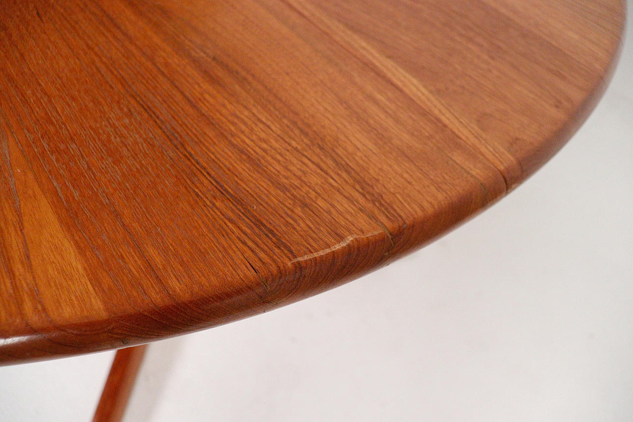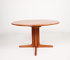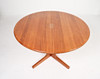 Mid-century dining table, teak, Denmark, 1970s, construction made of teak with a round top, dimensions approx.: H. 71.5 cm, Ø: 120 cm.