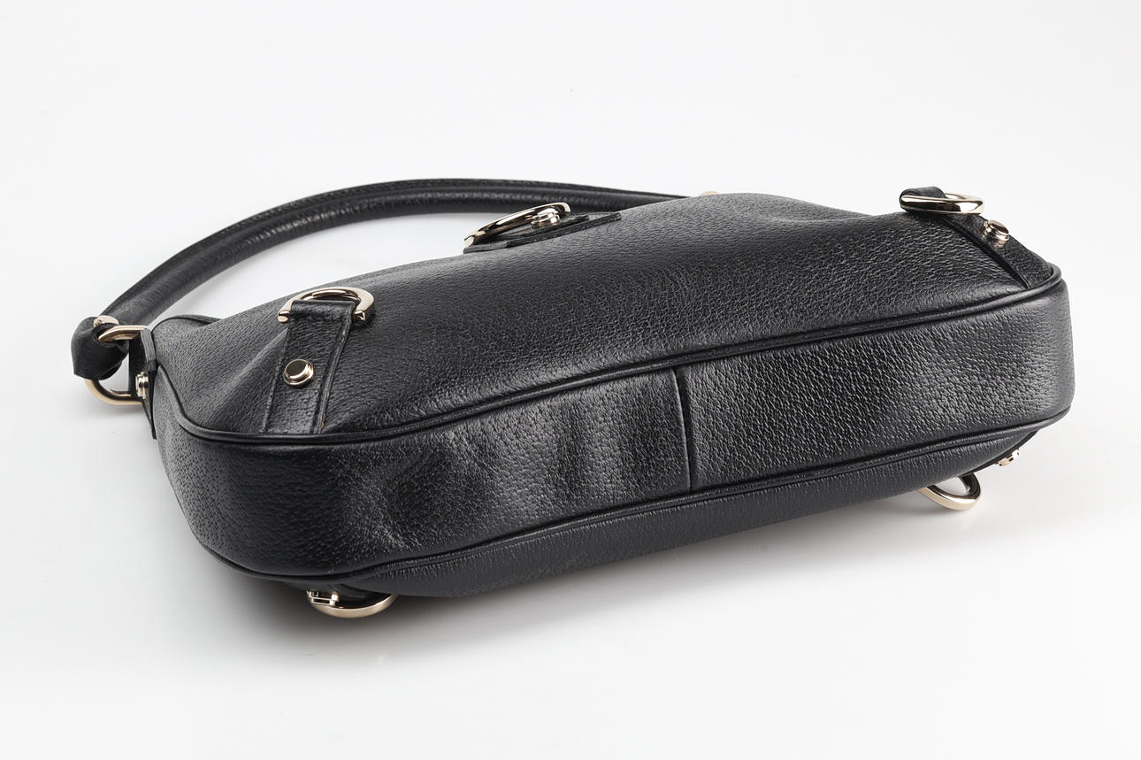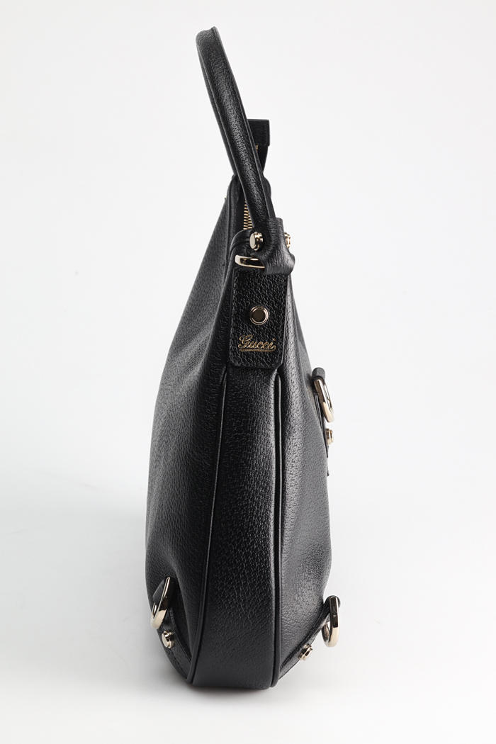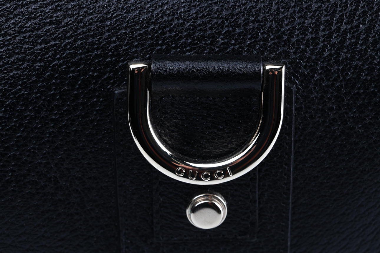 Black pigskin with details in white metal. Marked Gucci made in Italy, 130738, 213048. Purchased in 2005, receipt available. Dustbag and bag included. About 31x26x6 cm.