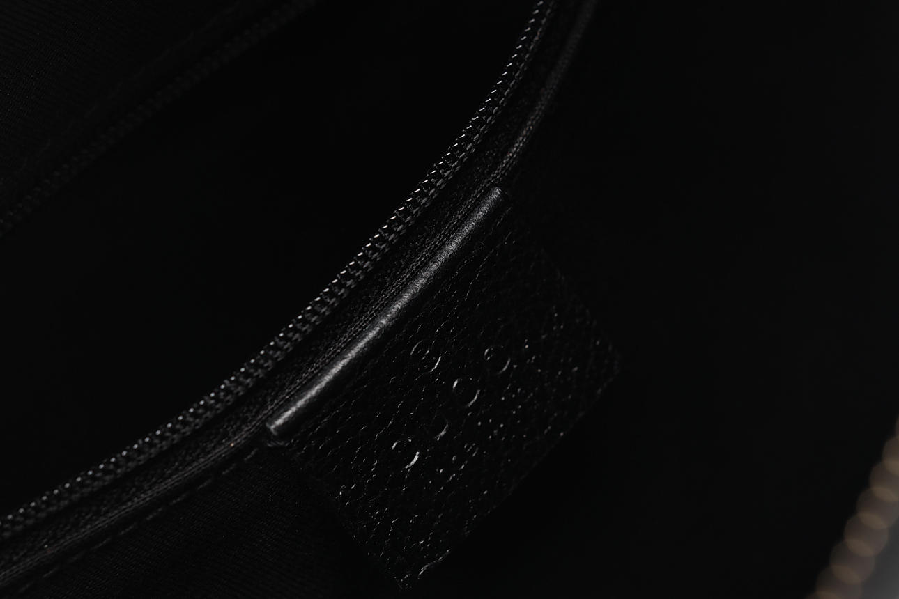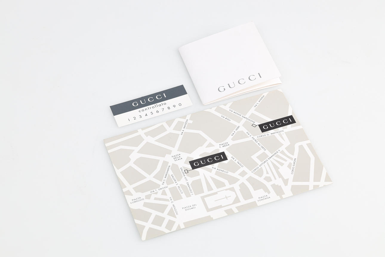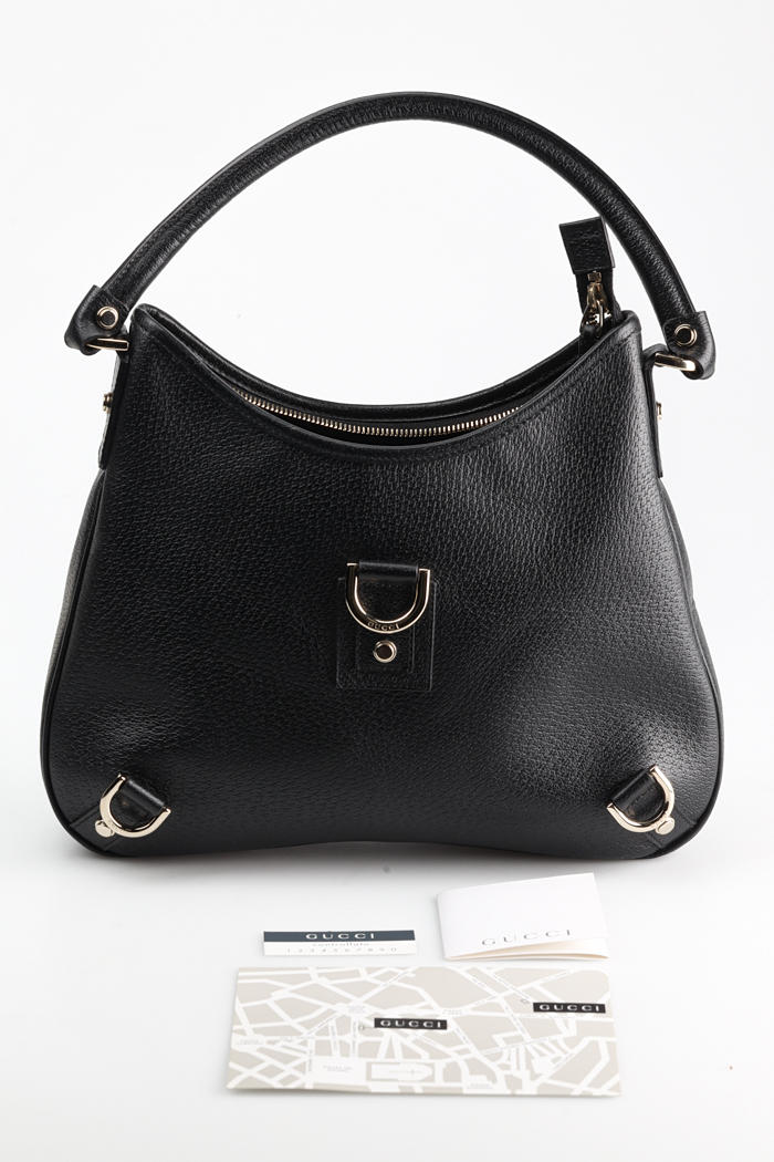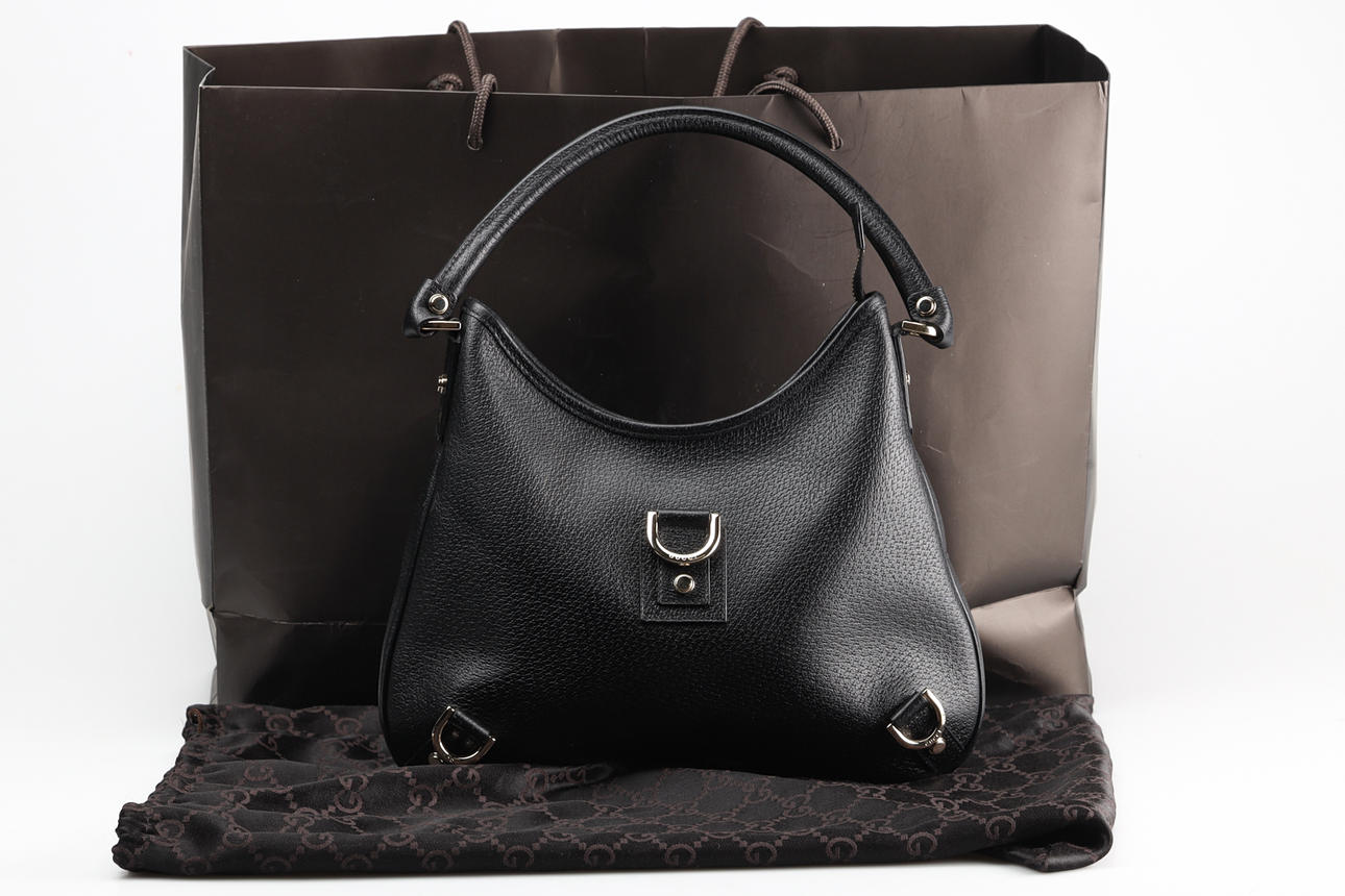 Black pigskin with details in white metal. Marked Gucci made in Italy, 130738, 213048. Purchased in 2005, receipt available. Dustbag and bag included. About 31x26x6 cm.