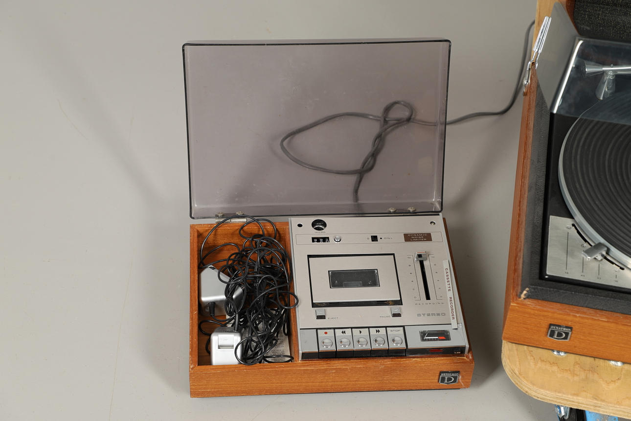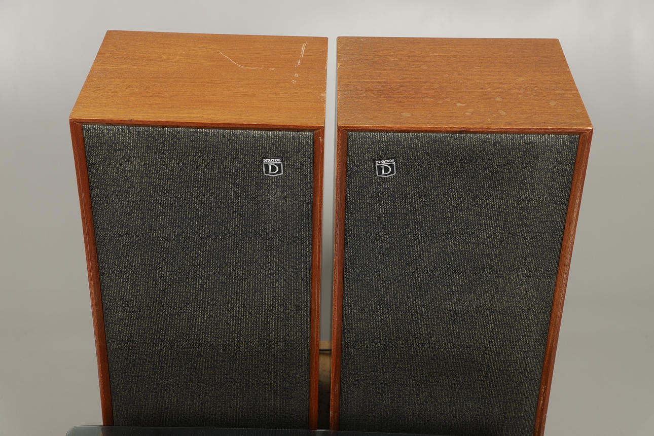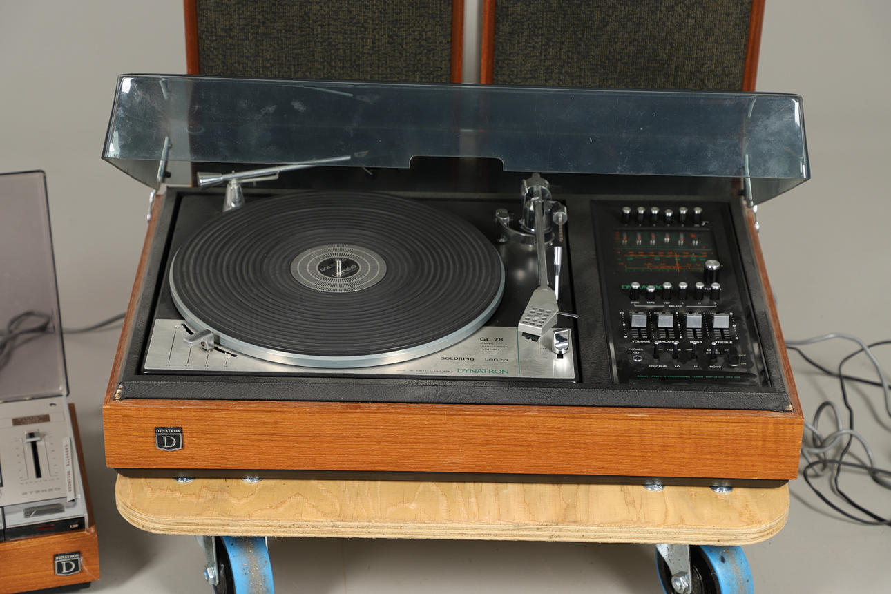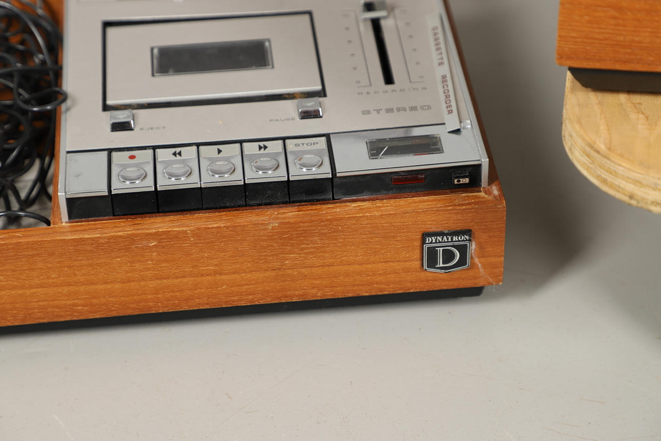 3096561. A DYNATRON GL 78 STEREO TRANSCRIPTION TURNTABLE & SRX 29B SOLID STATE TUNER/AMPLIFIER IN TEAK CASE, A MODEL C.P.I. CASSETTE RECORDER, AND A PAIR OF LS3038 LOUDSPEAKERS.