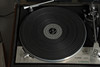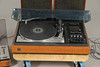 The turntable and amplifier with removable perspex lift top lid, 18cm high x 61cm wide x 39cm deep.