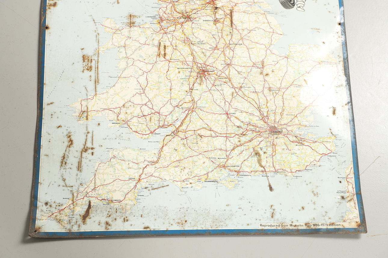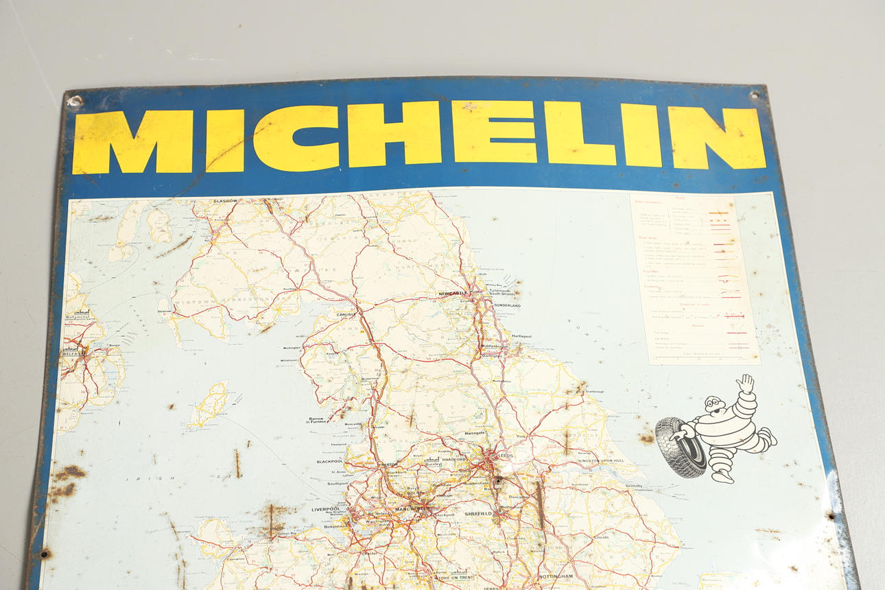 A METAL MICHELIN WALL MAP.