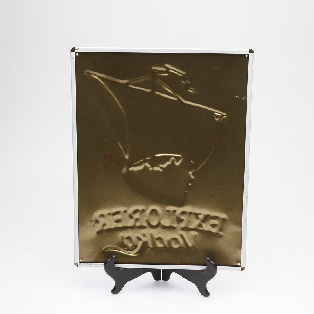 3101464. SIGN, "Explorer vodka", tin, second half of the 20th century.