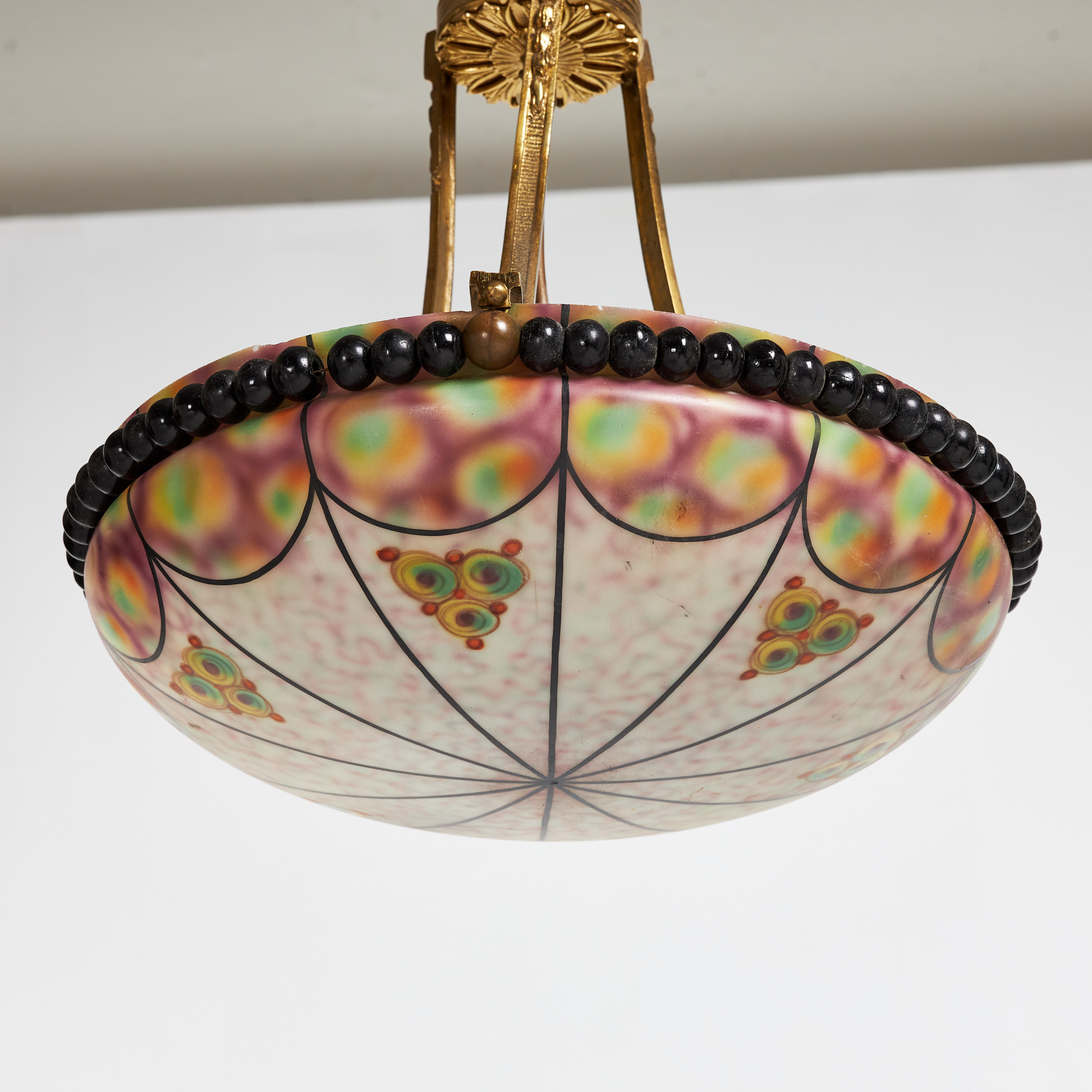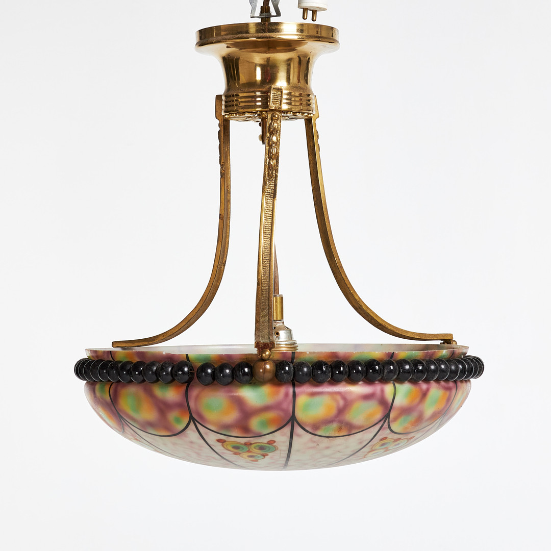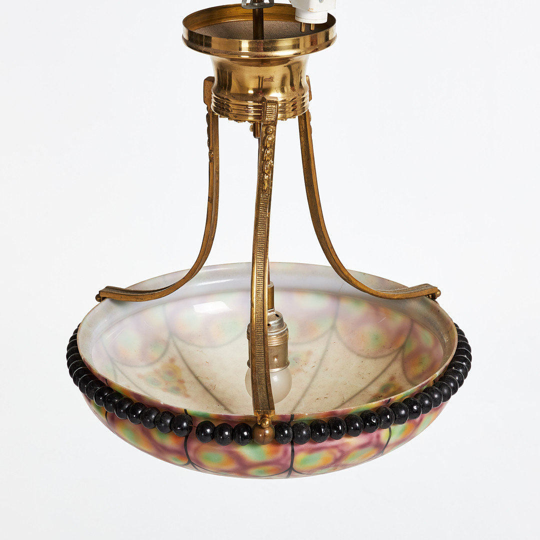 3103539. CEILING LAMP. First part of the 20th century, polychrome colored cup, beaded glass, one light point.